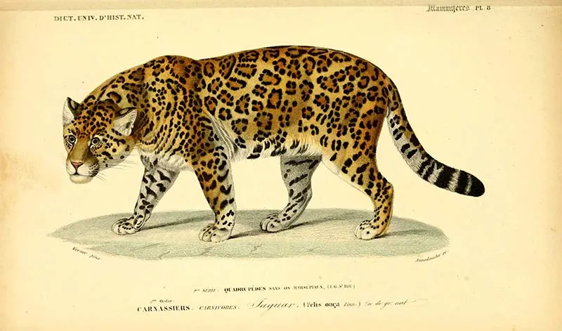 The next illustration in this collection of vintage animal prints is that of a jaguar. When I first saw this painting I thought it was a leopard.