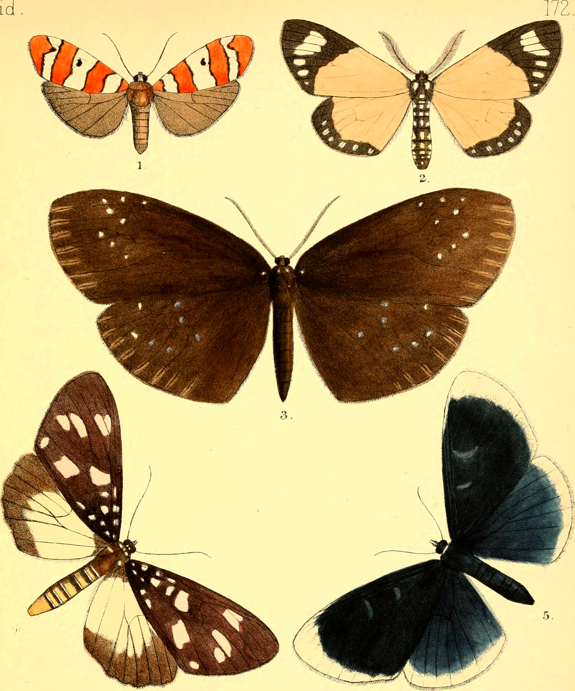 A lovely collection of 5 butterflies from Charles Waterhouse’s ” Aid To The Identification Of Insects”. This is a beautiful book from the 1880’s full of fabulous insect illustrations from the Smithsonian Libraries.