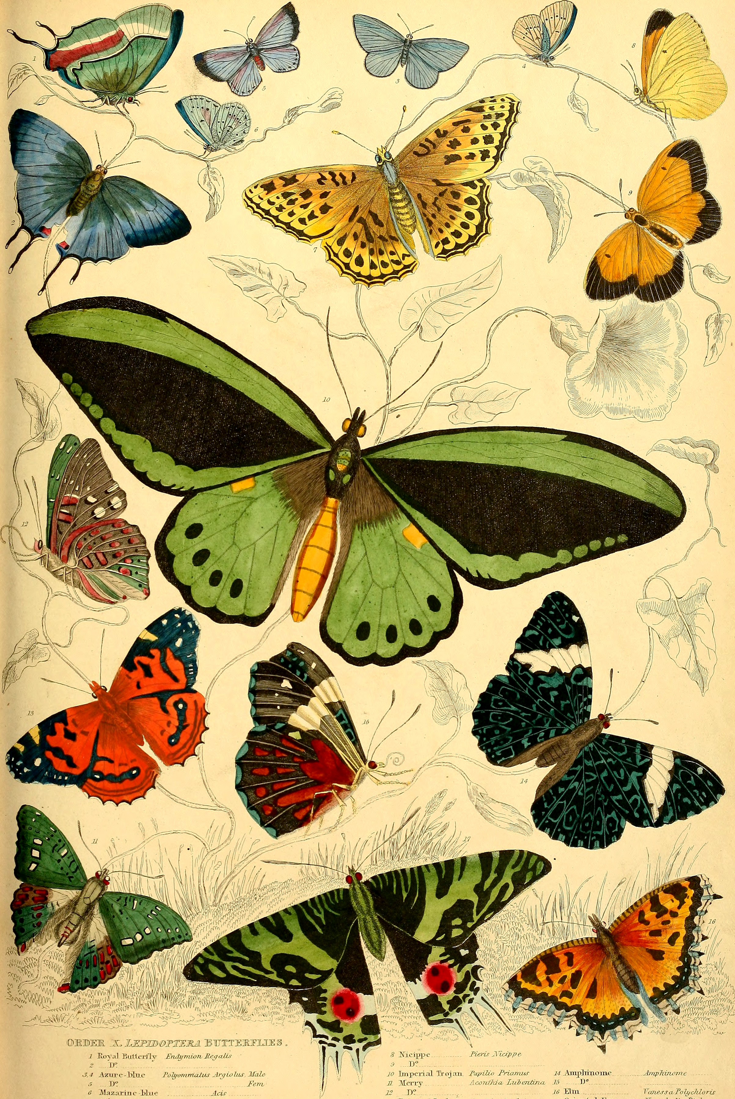 This is a gorgeous collection of vintage butterfly images. I love the impressive Imperial Trojan butterfly in the middle of the plate.
