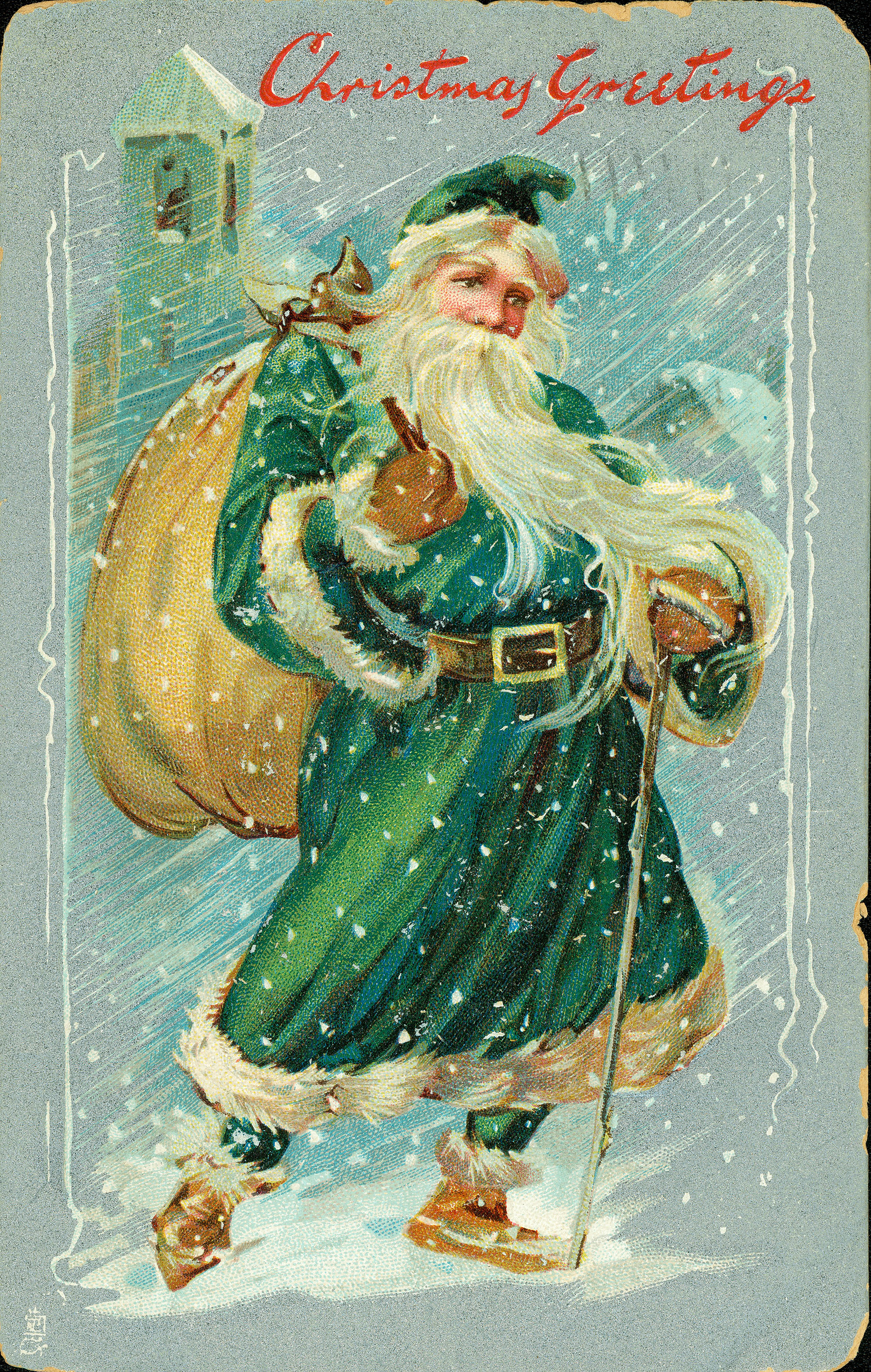 7. Vintage Father Christmas in Green 1909