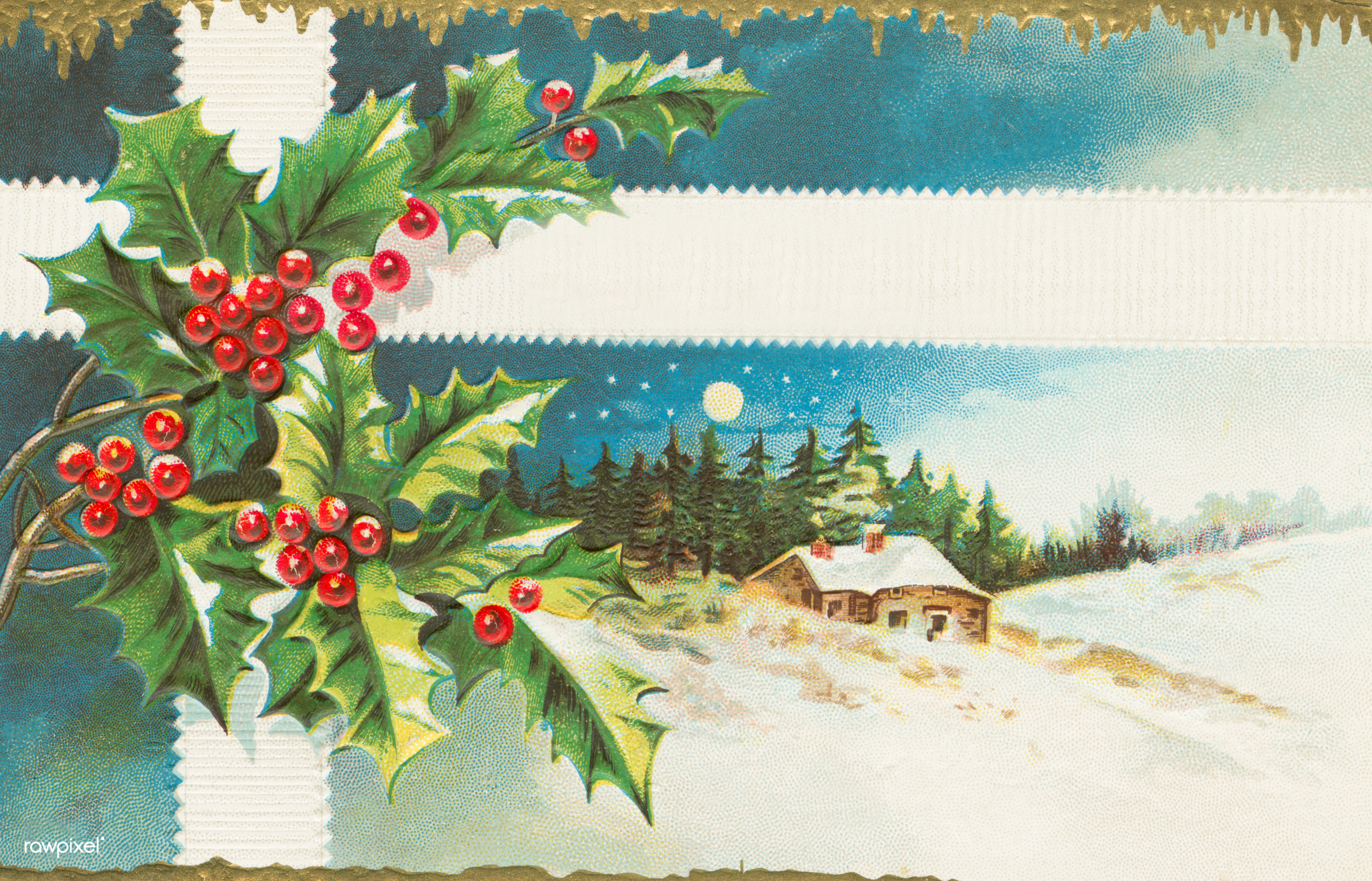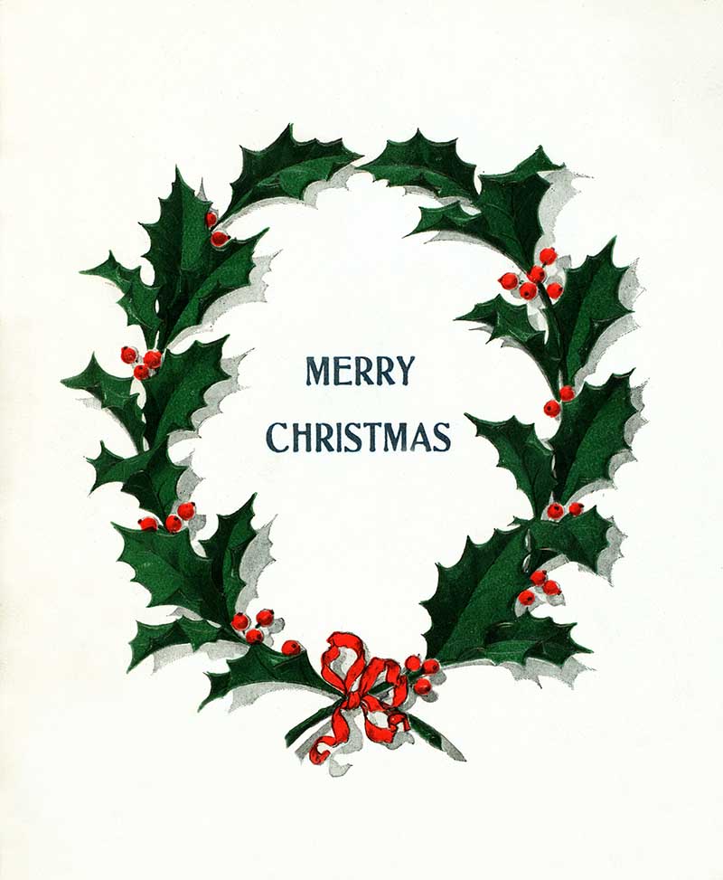Another vintage Christmas image from the menu is a wreath of holly leaves. You will find some more wonderful holly illustrations, including vintage Christmas cards.