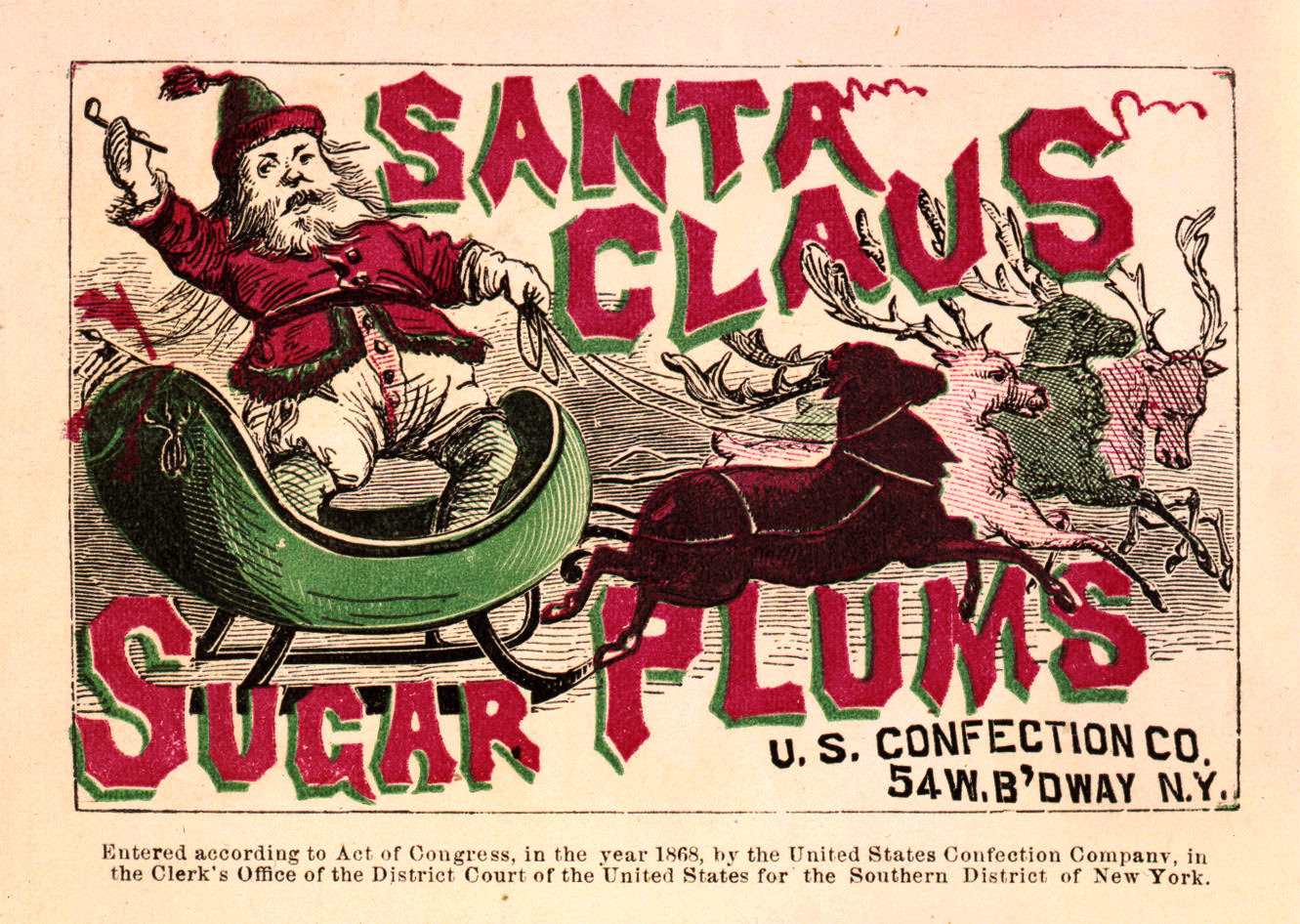 This is a vintage Christmas image for a 1968 advert for sugar plums. Sugar plum is now a pretty defunct term. The Oxford dictionary defines a sugar plum as a comfit. That is a seed, nut, or scrap of spice coated with a layer of hard sugar, similar to the crunchy outer shell of an M&M. Comfits are believed to be one of the world’s oldest sugar confections.