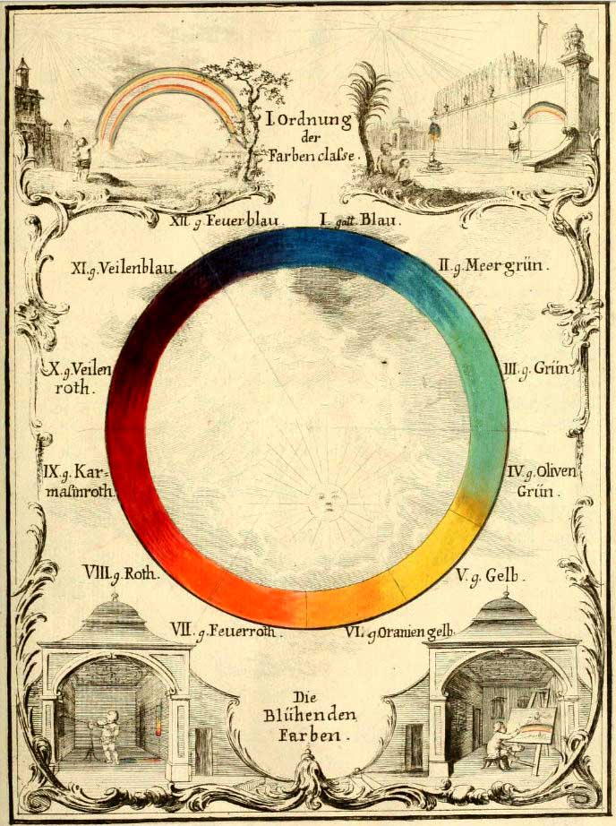A 1772 color circle by the Austrian naturalist Ignaz Schiffermuller from his publication ” Versuch eines Farbensystems” (Trying a color system).