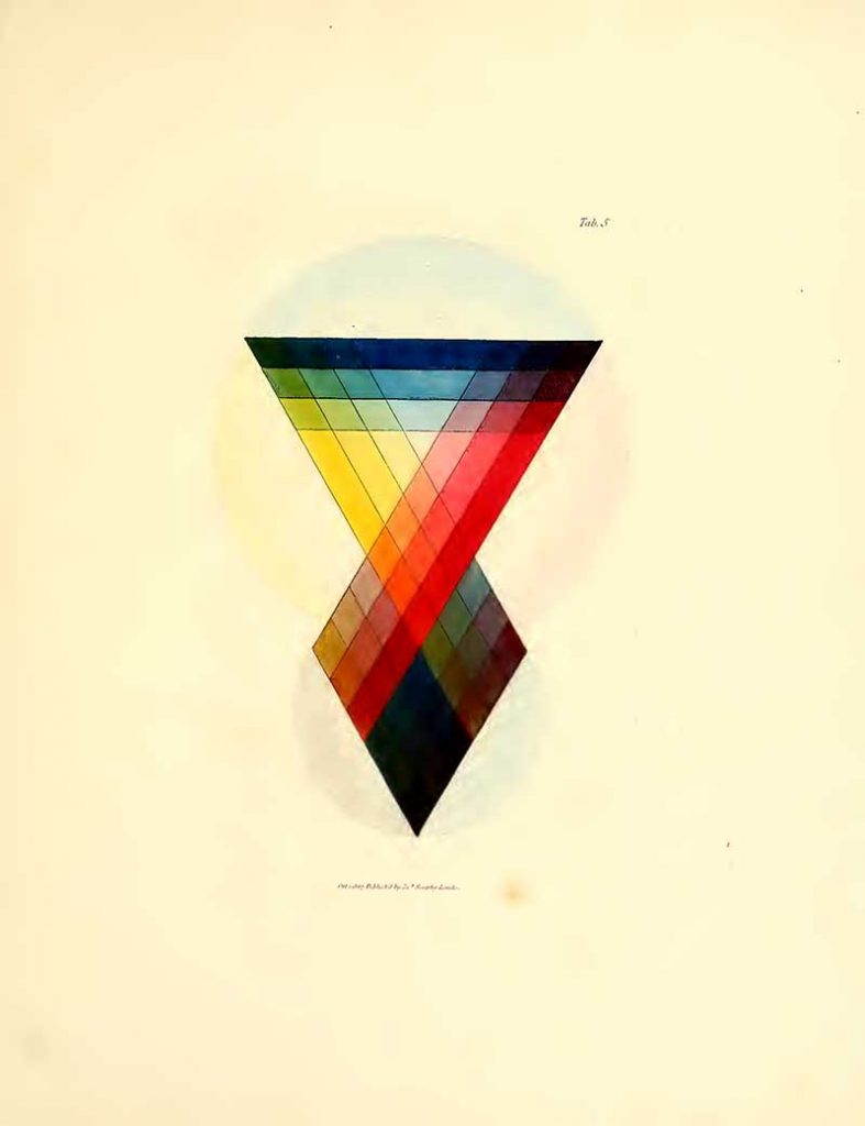 Colour blending triangles from James Sowerby’s “A New Elucidation of Colours, Original, Prismatic, and Material” (1809).