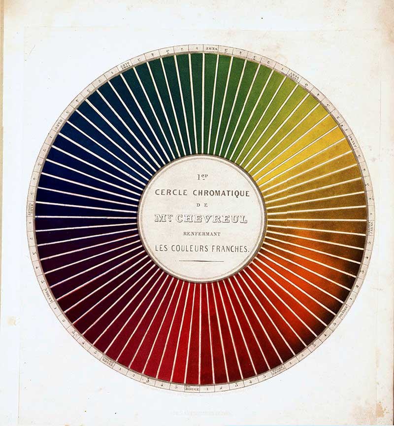 This vintage color wheel is by the French chemist Michel Eugène Chevreul.