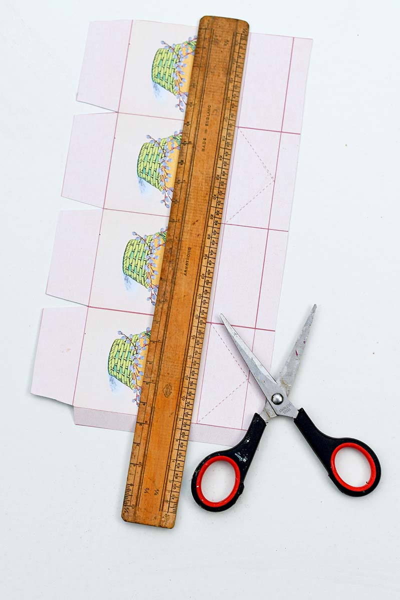3. Next, score along the fold lines using a ruler and something with a sharp edge, such as the end of scissors or a bread knife.