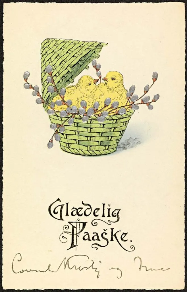 This is actually another American vintage Easter postcard this one is from the Newberry Library Chicago. Even though it’s an American postcard the design is very Scandinavian with the newly hatched yellow chick.