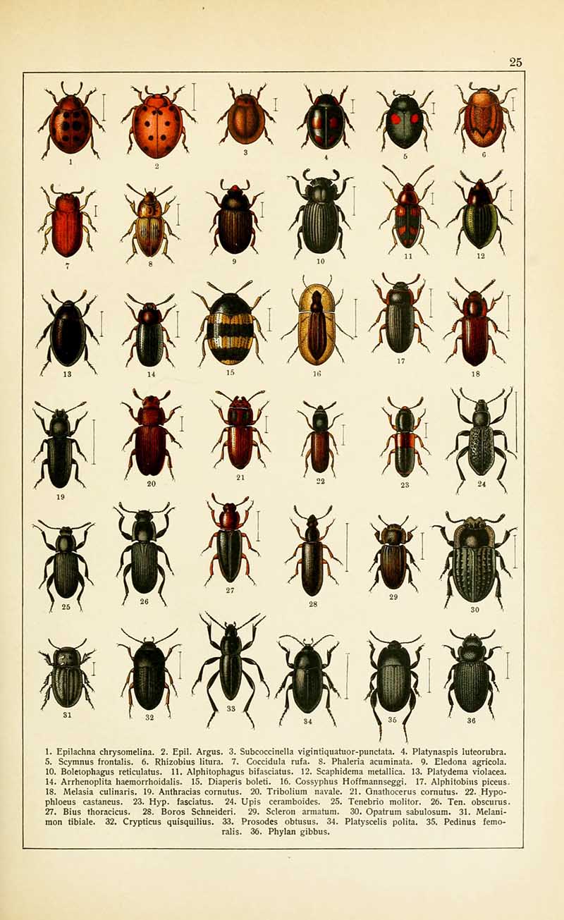 This vintage insect identification chart of beetles seems full of what we commonly call ladybirds.
