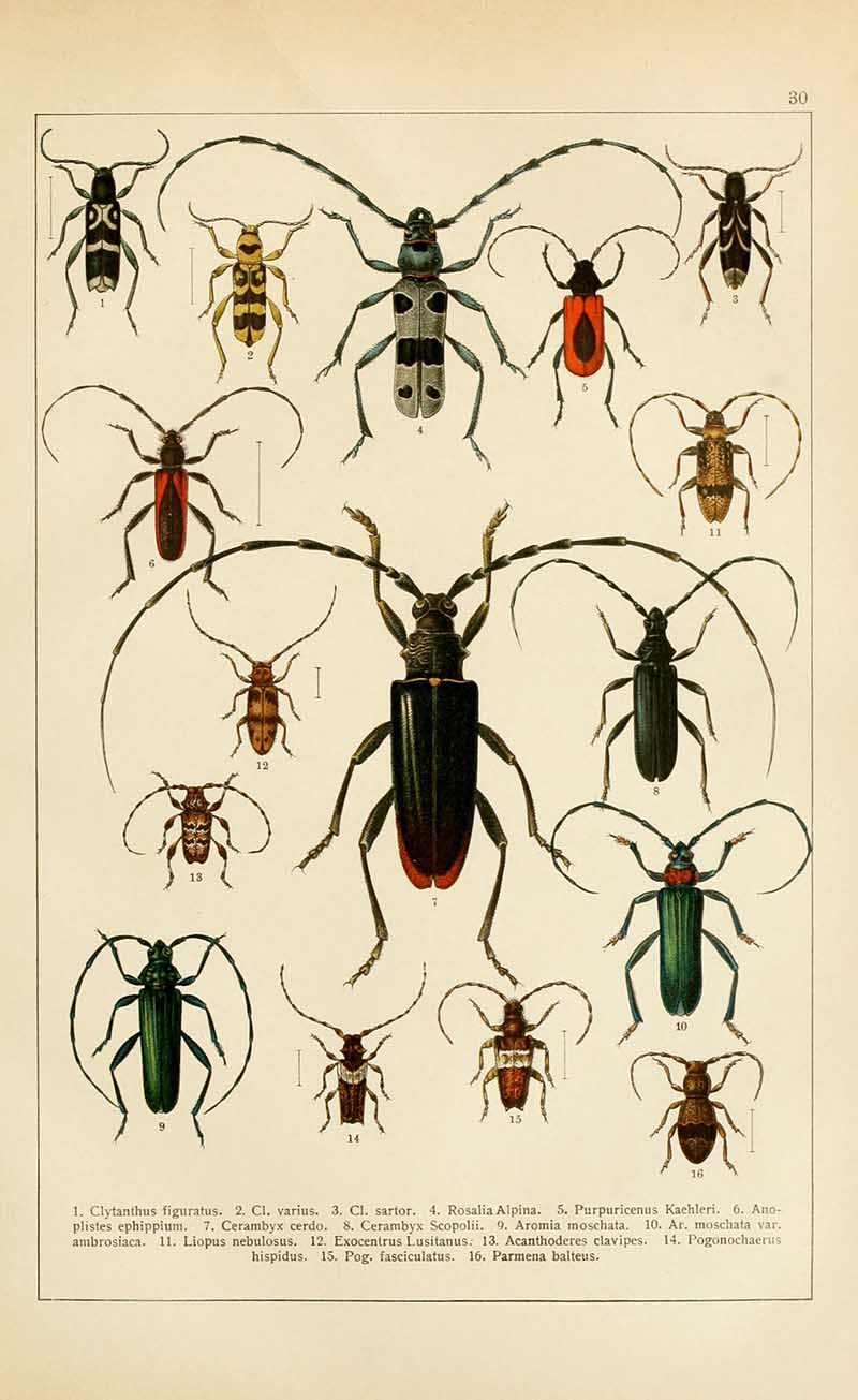 Carl Gustav Calwer (1821-1874) was a German entomologist best known for his beetle work. The following entomology prints are from “Calwer’s Beetle Book; Introduction to the Knowledge of the Beetles of Europe”, 1916.