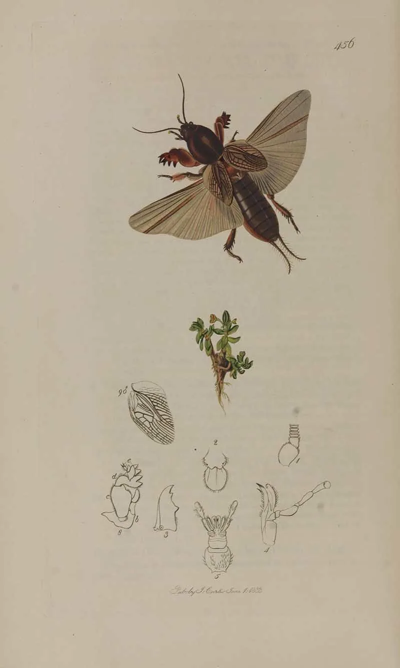 John Curtis was a distinguished British entomologist and illustrator of the 19th century, best known for his masterpiece, “British Entomology.” The work was published in 1824 and comprises 770 exquisitely detailed plates depicting insects native to the British Isles, often alongside associated plant species.