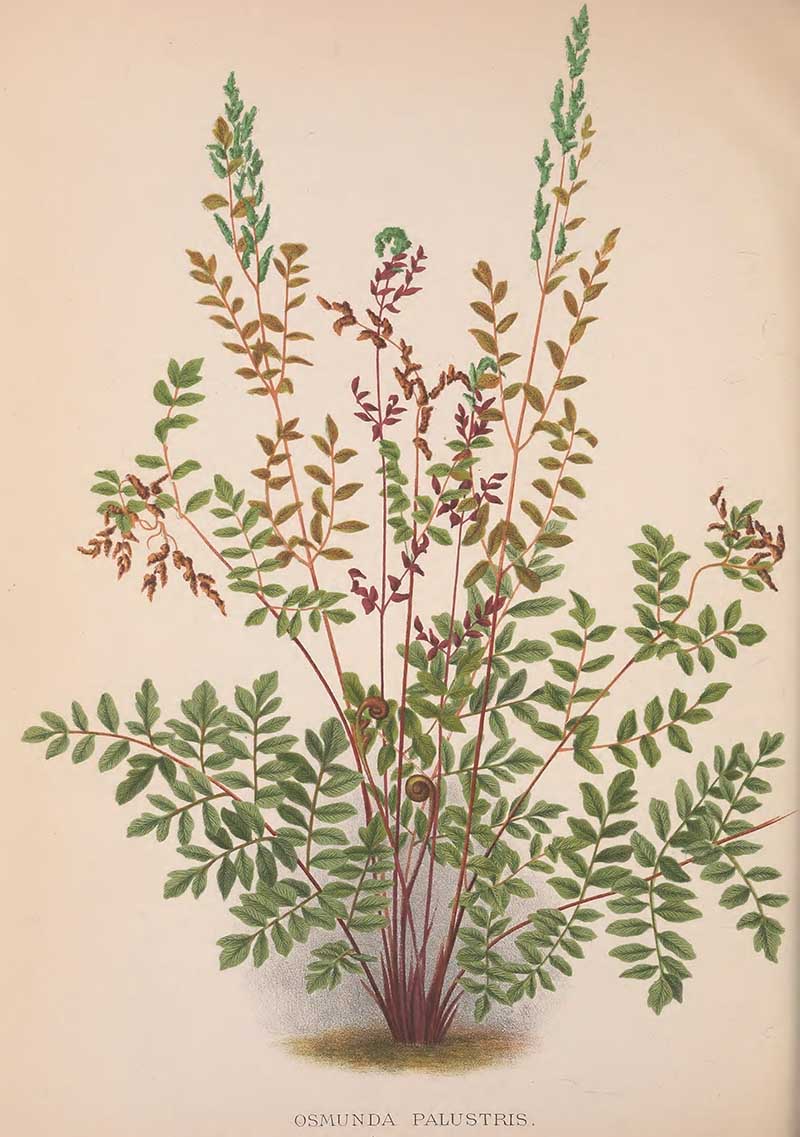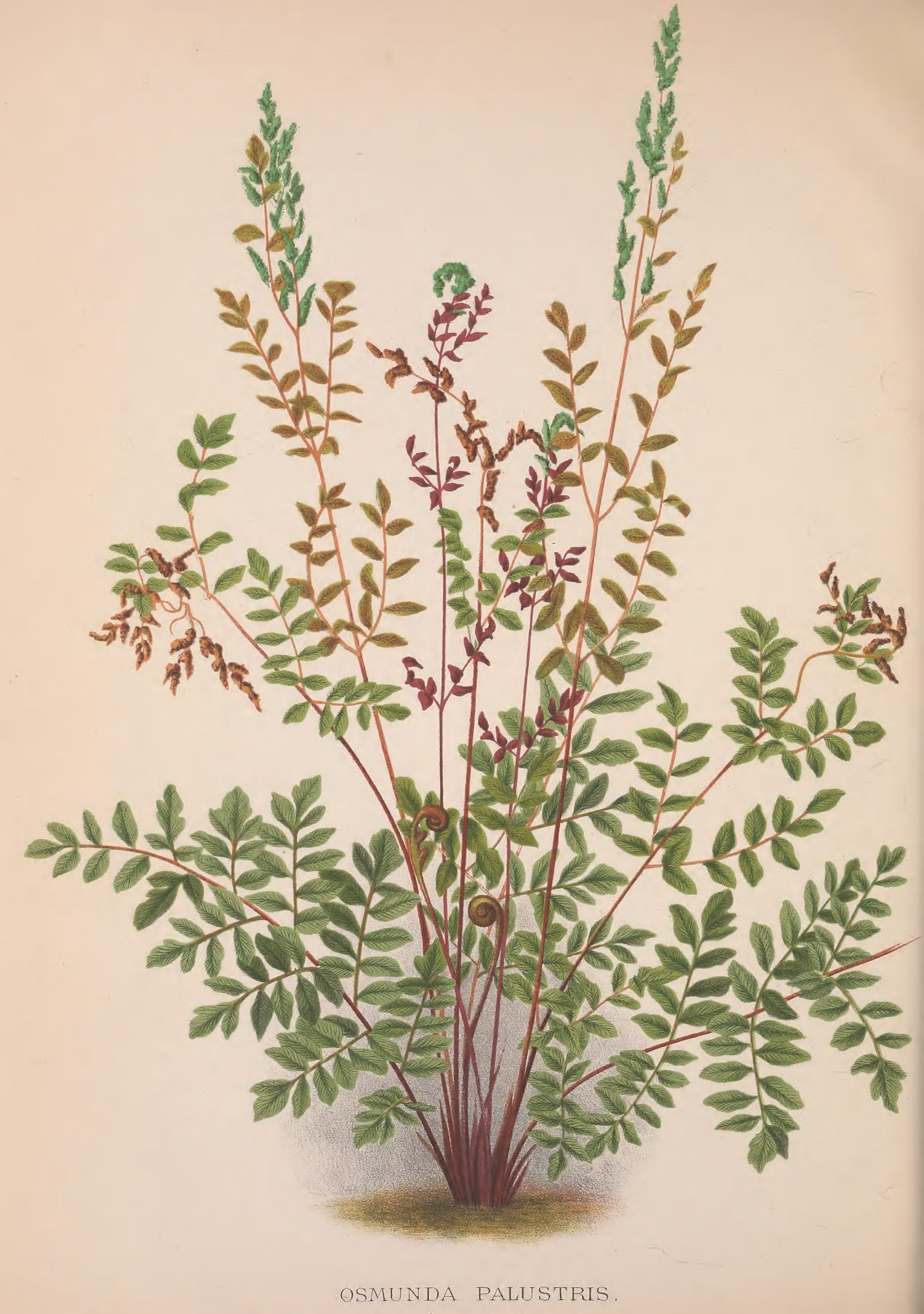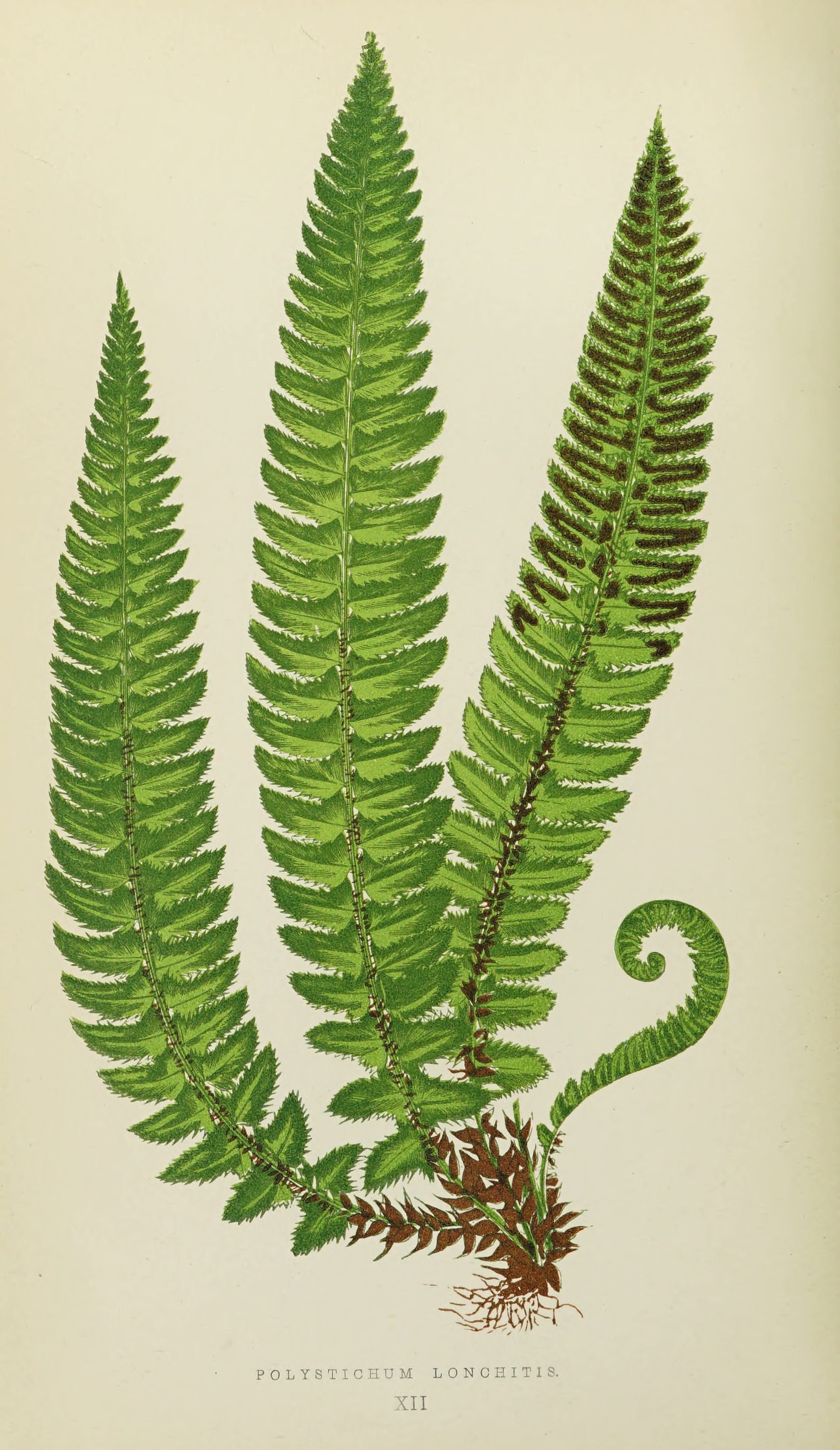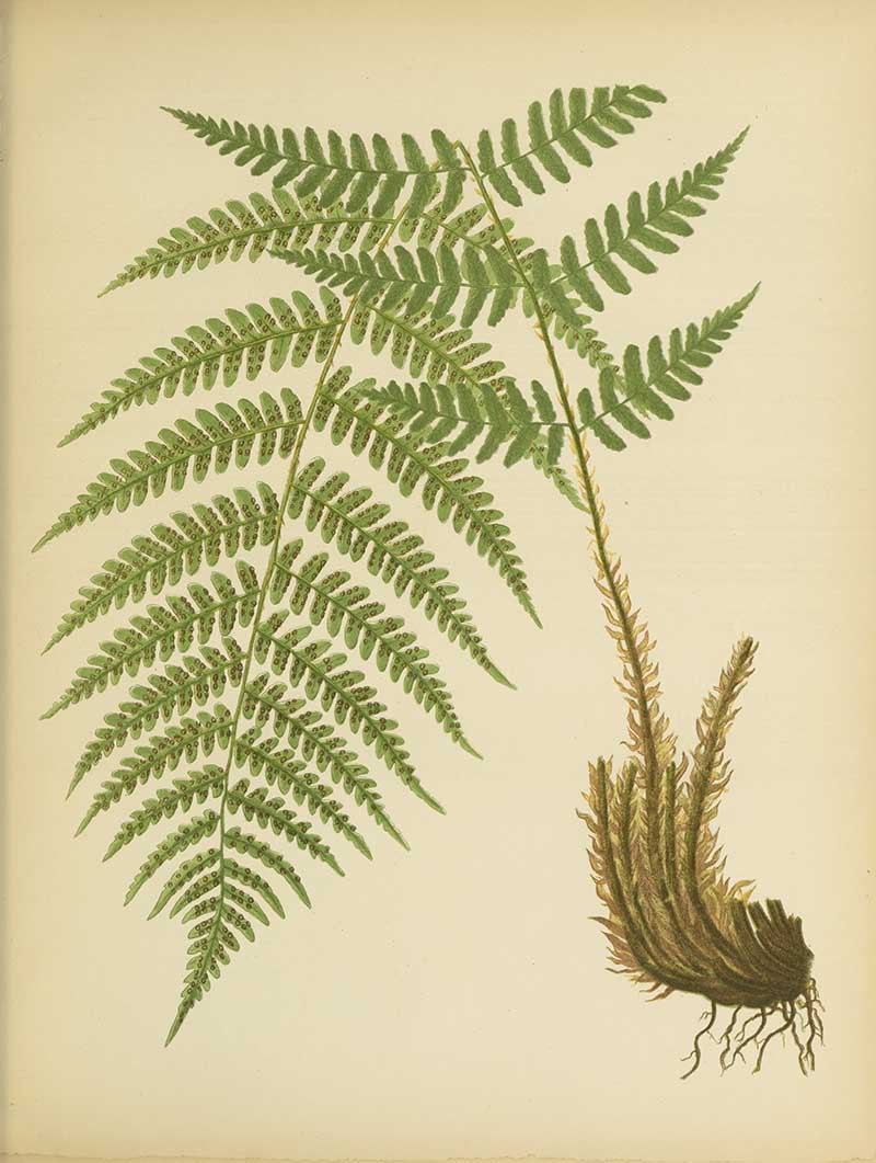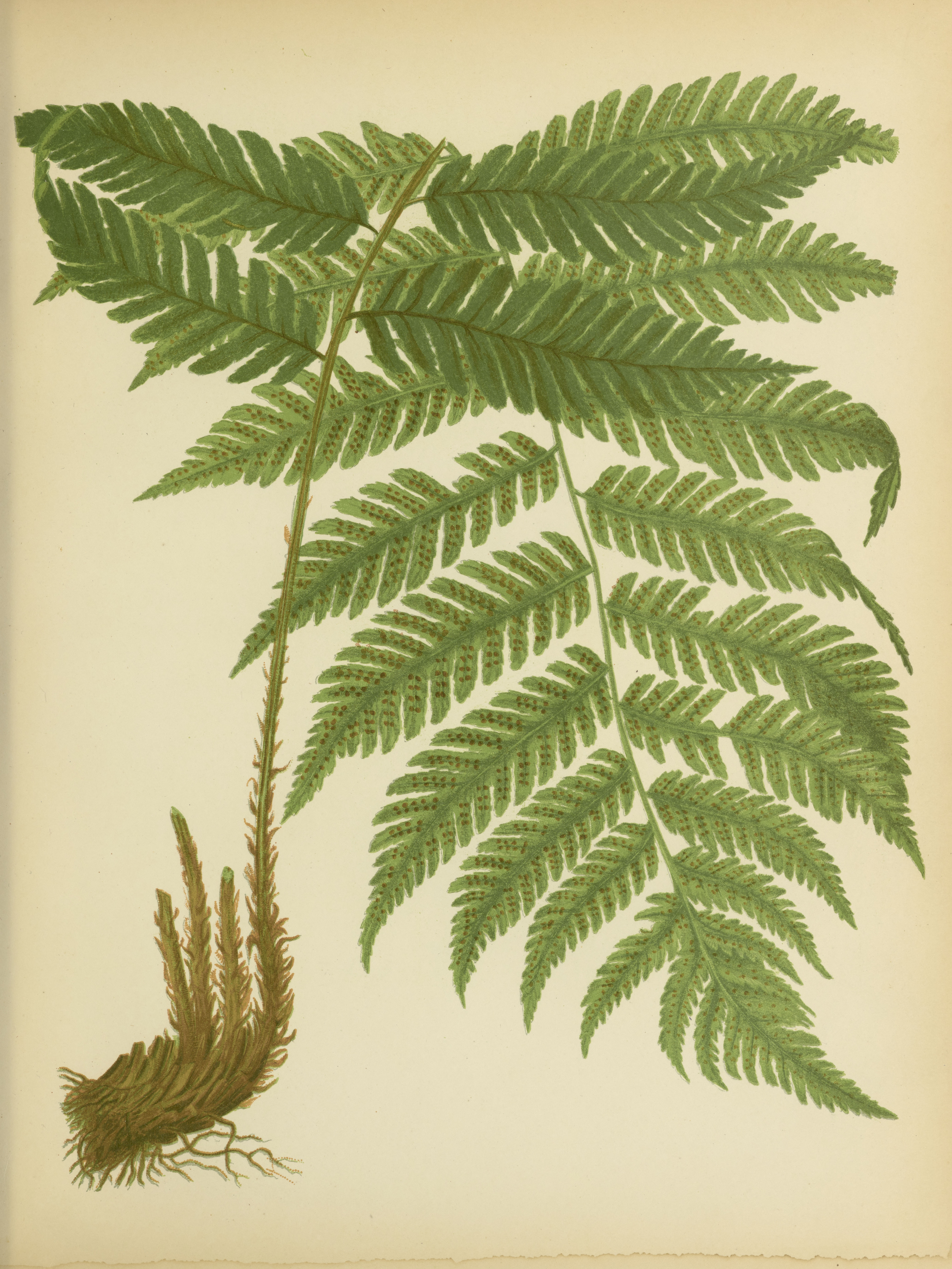 The following vintage fern illustrations are from “Our native ferns, or, A History of the British Species and their Varieties” / by E.J. Lowe 1874.