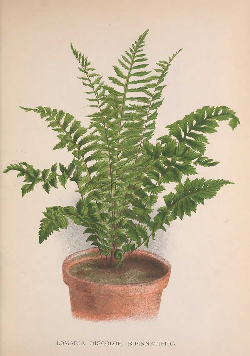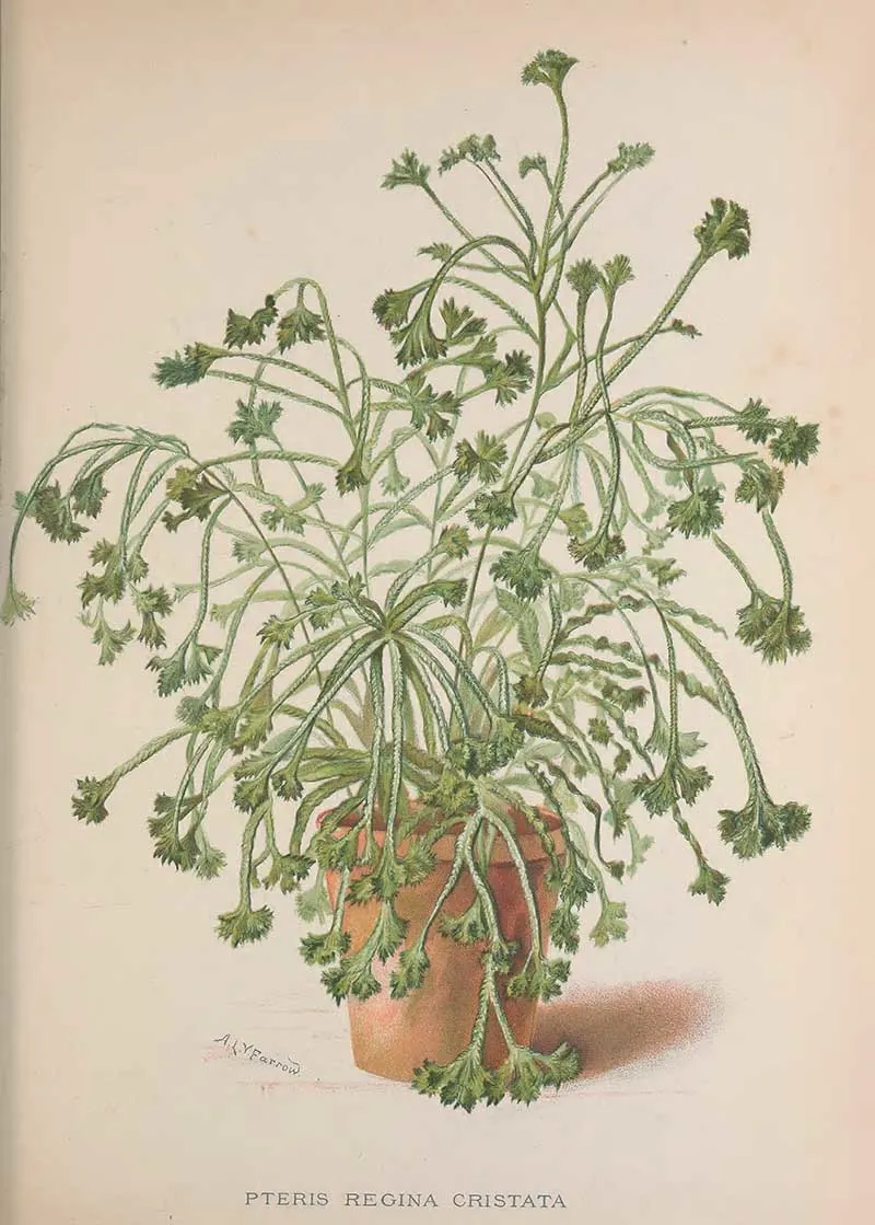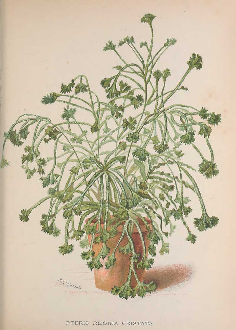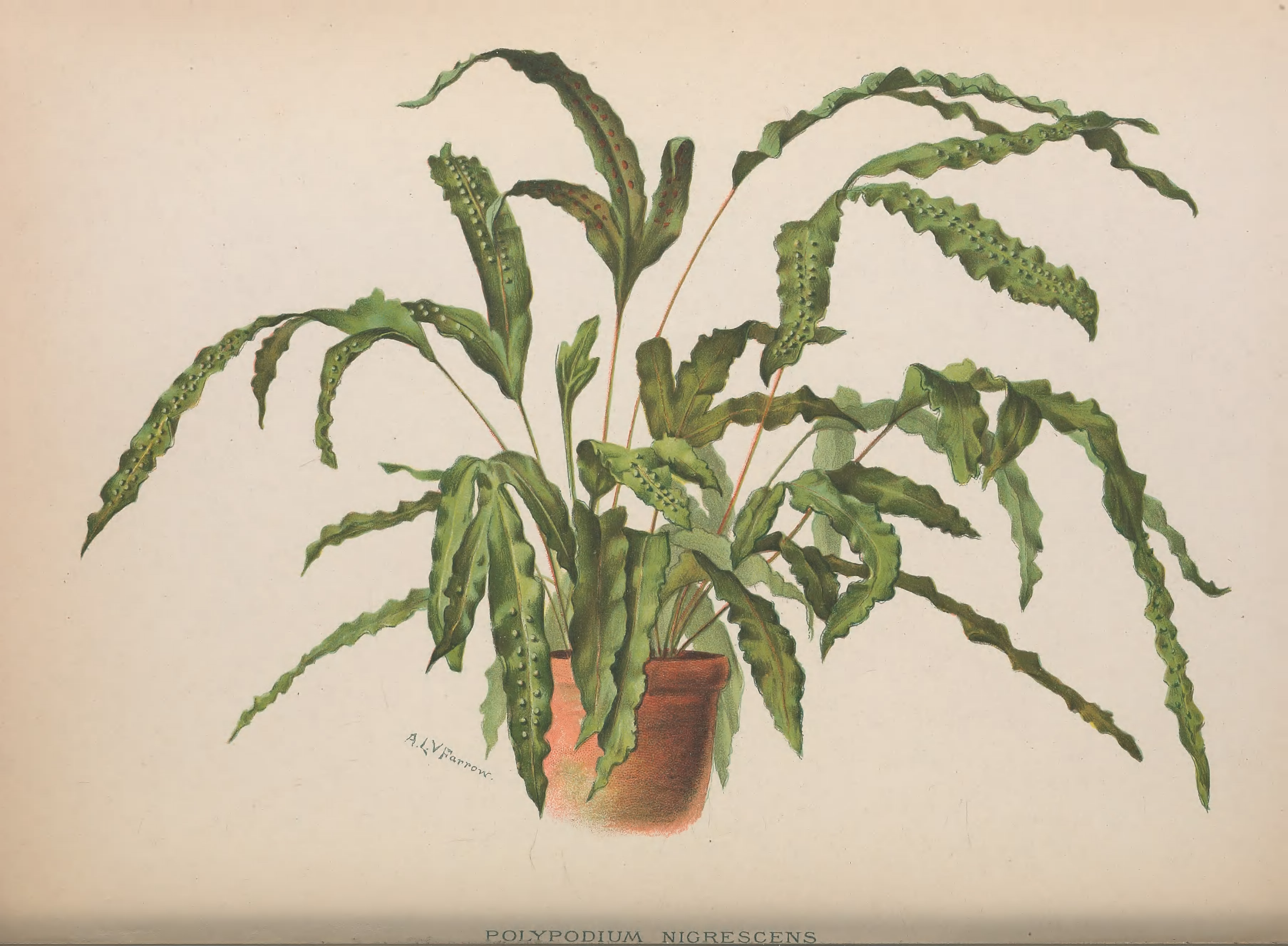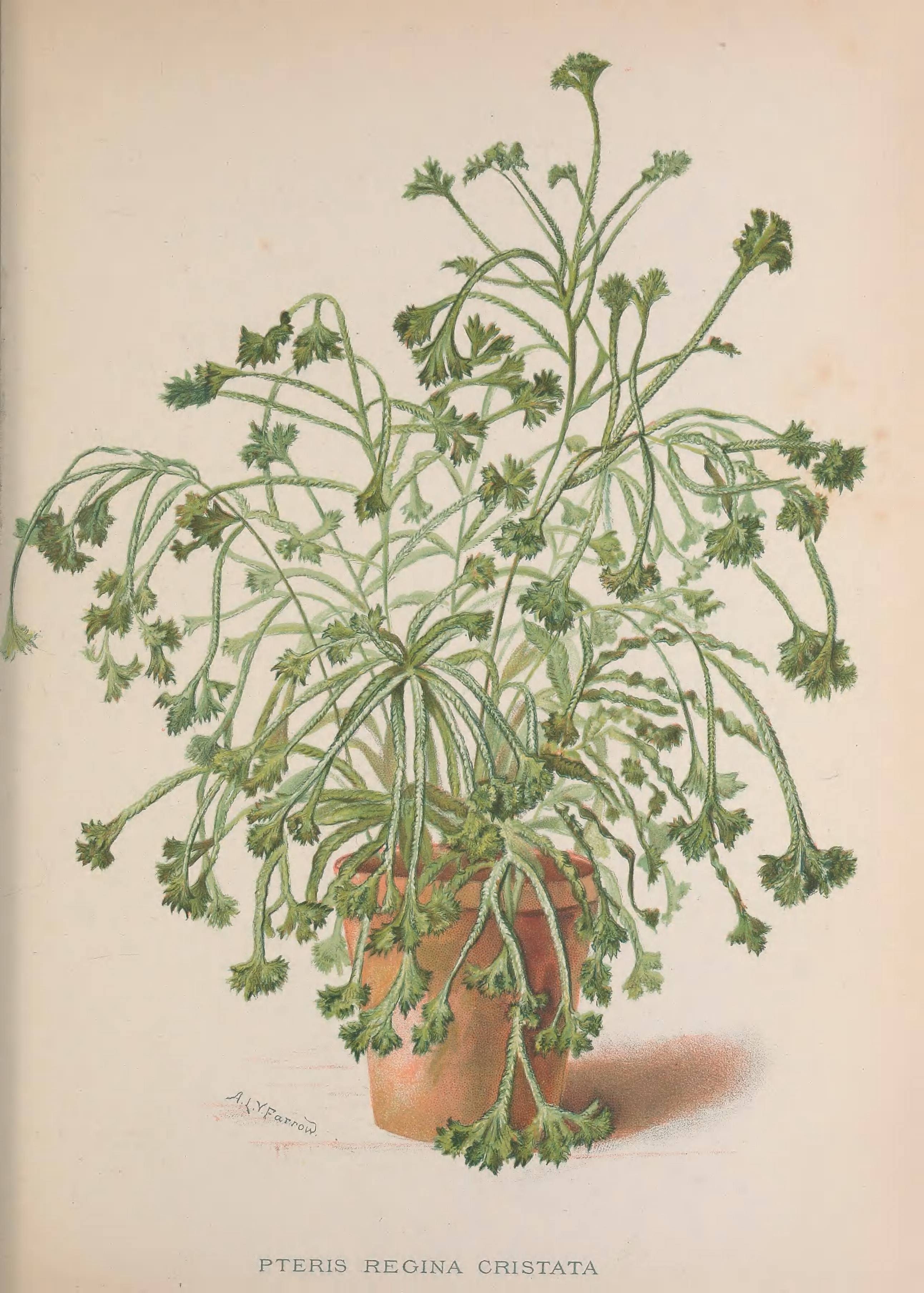 Tried as I might to mirror the look, I seemed only to turn my home into a fern graveyard. Enough was enough. I decided if I couldn’t grow ’em, I’d hang ’em. So, here is an array of vintage fern prints. More lively than anything you’d find in my living room – all free and in the public domain, no less!