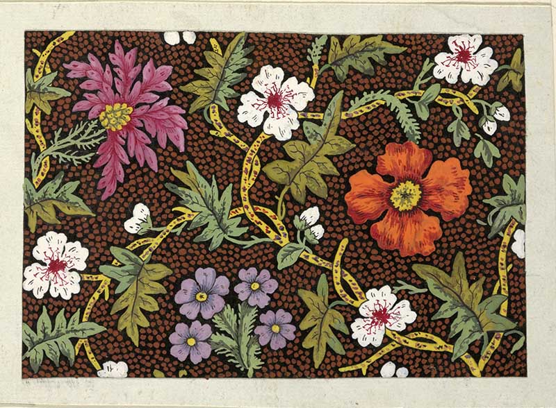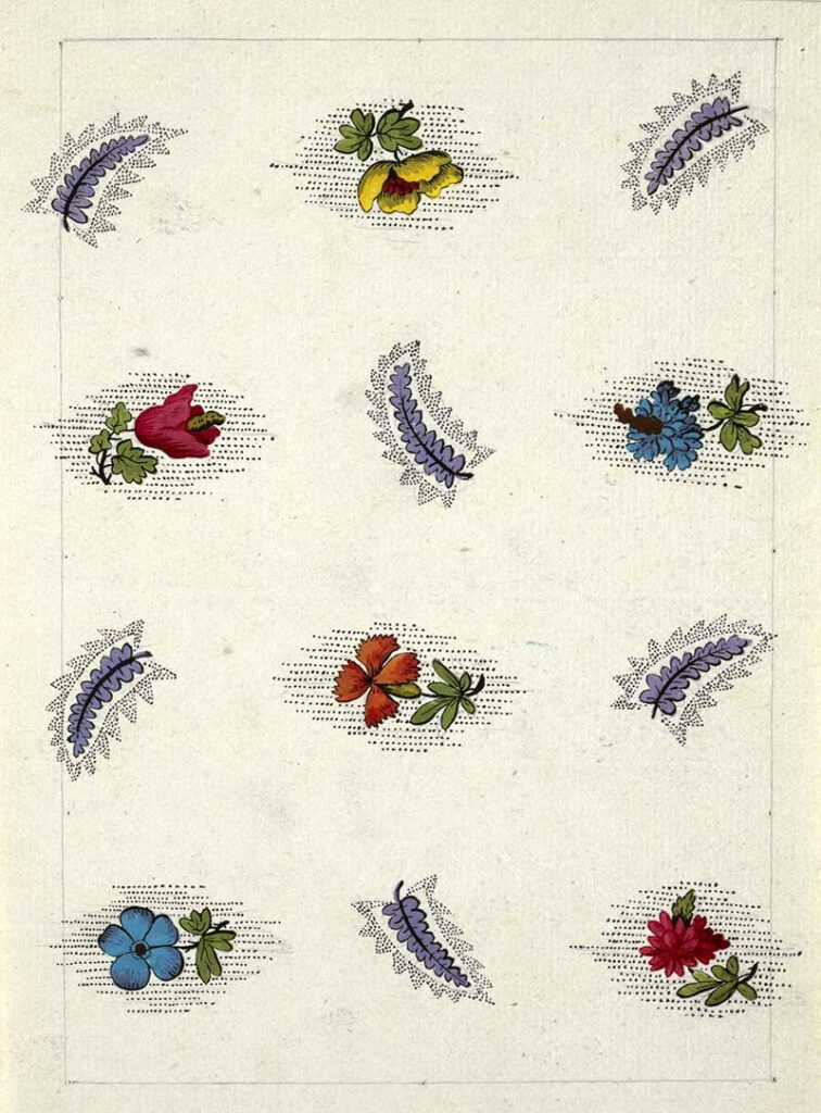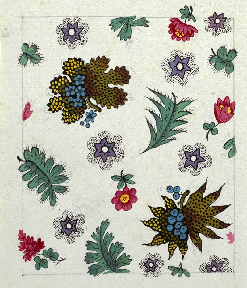 6. Scattered flower and leaf designs accented with a fine dotted pattern