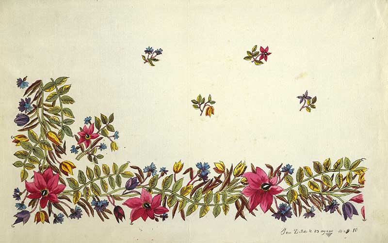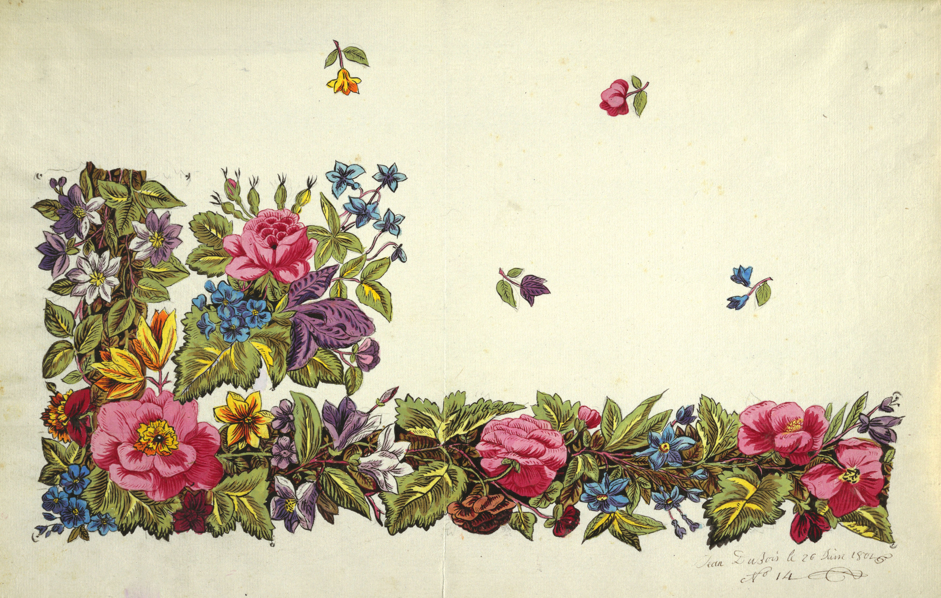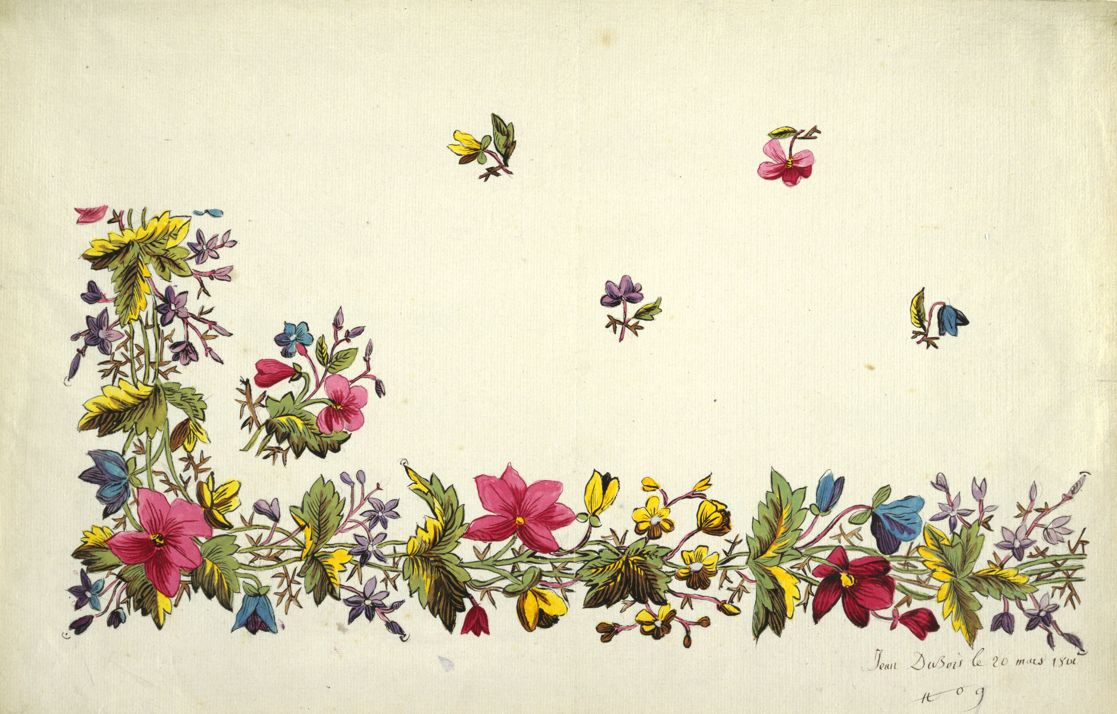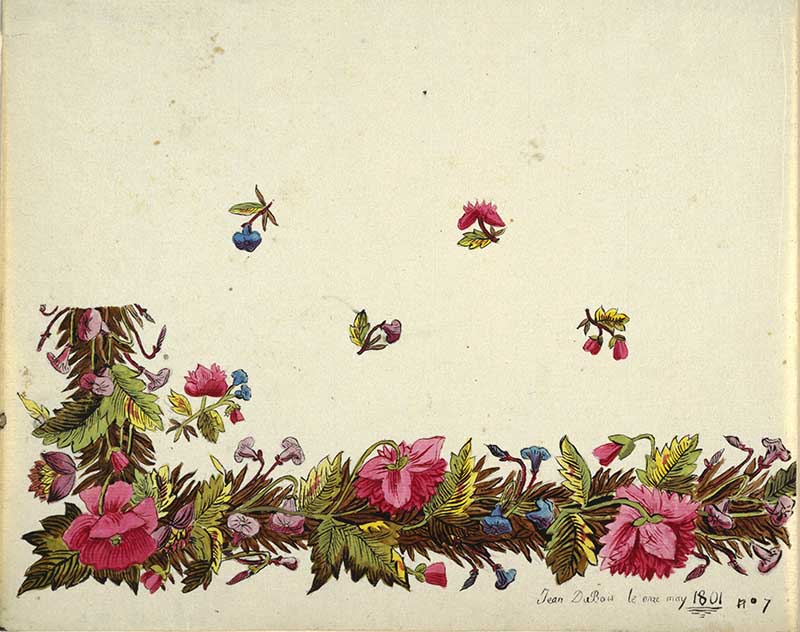 These floral border patterns are inscribed in ink in the bottom right corner, Jean DuBois le Onze May 1801.