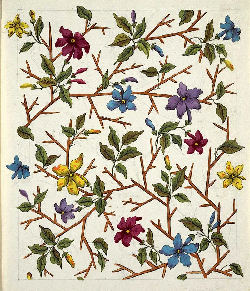 The textile flower patterns in this collection are from the early 1800s when Chintz was very popular. They were designed before the fabulous floral patterns of William Morris.