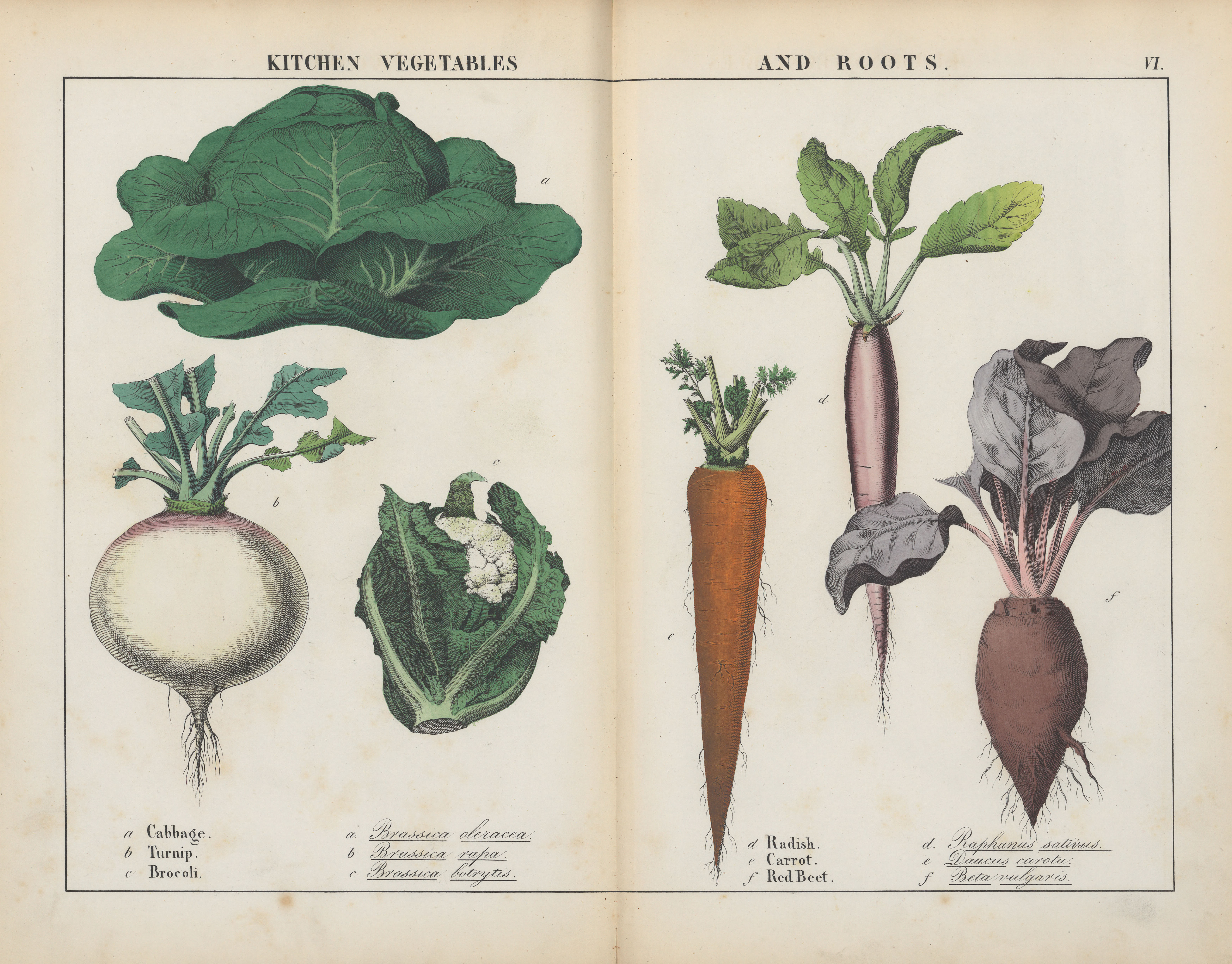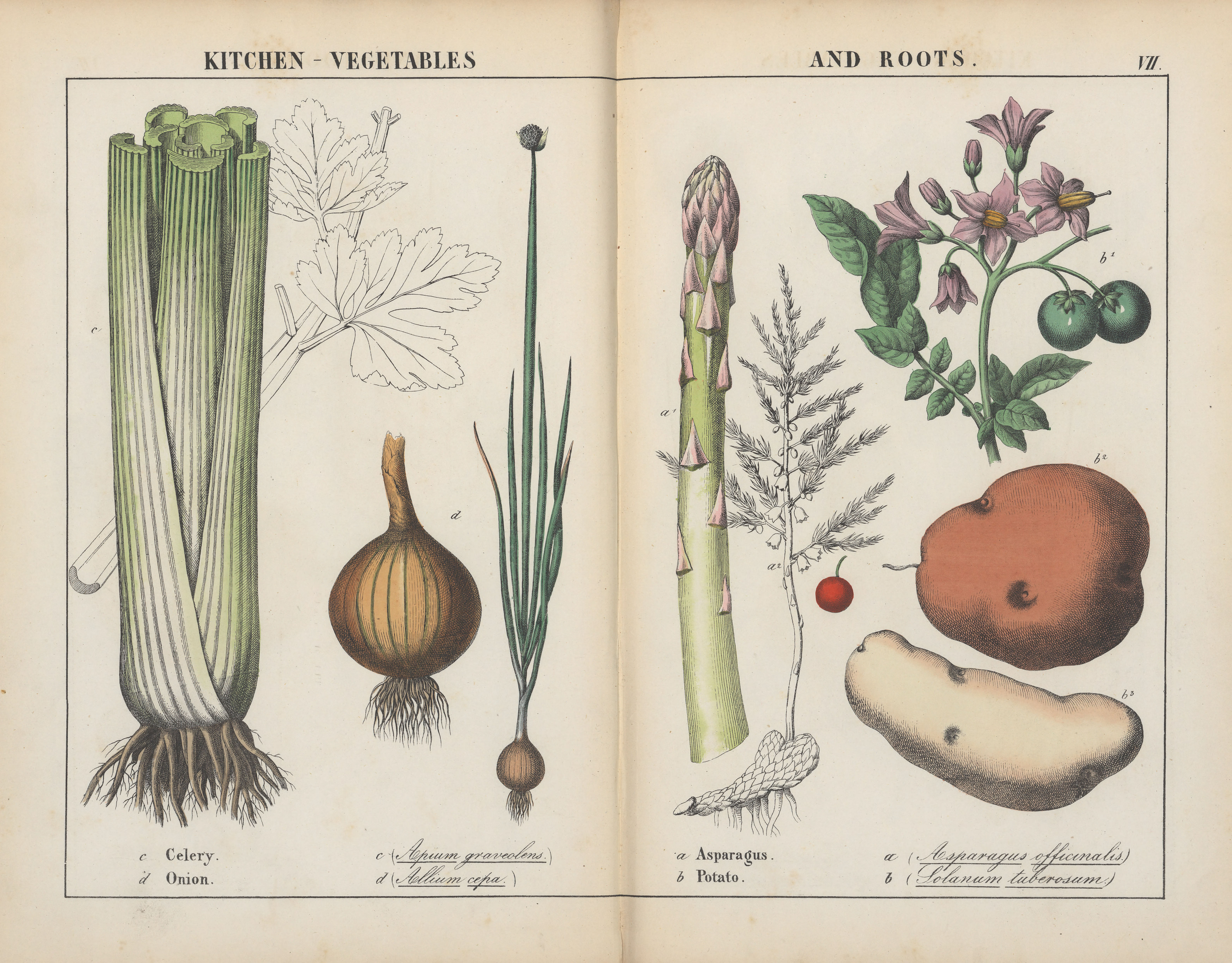 “Vegetables have been divided into several great classes, and the first plate gives examples of each of these.“