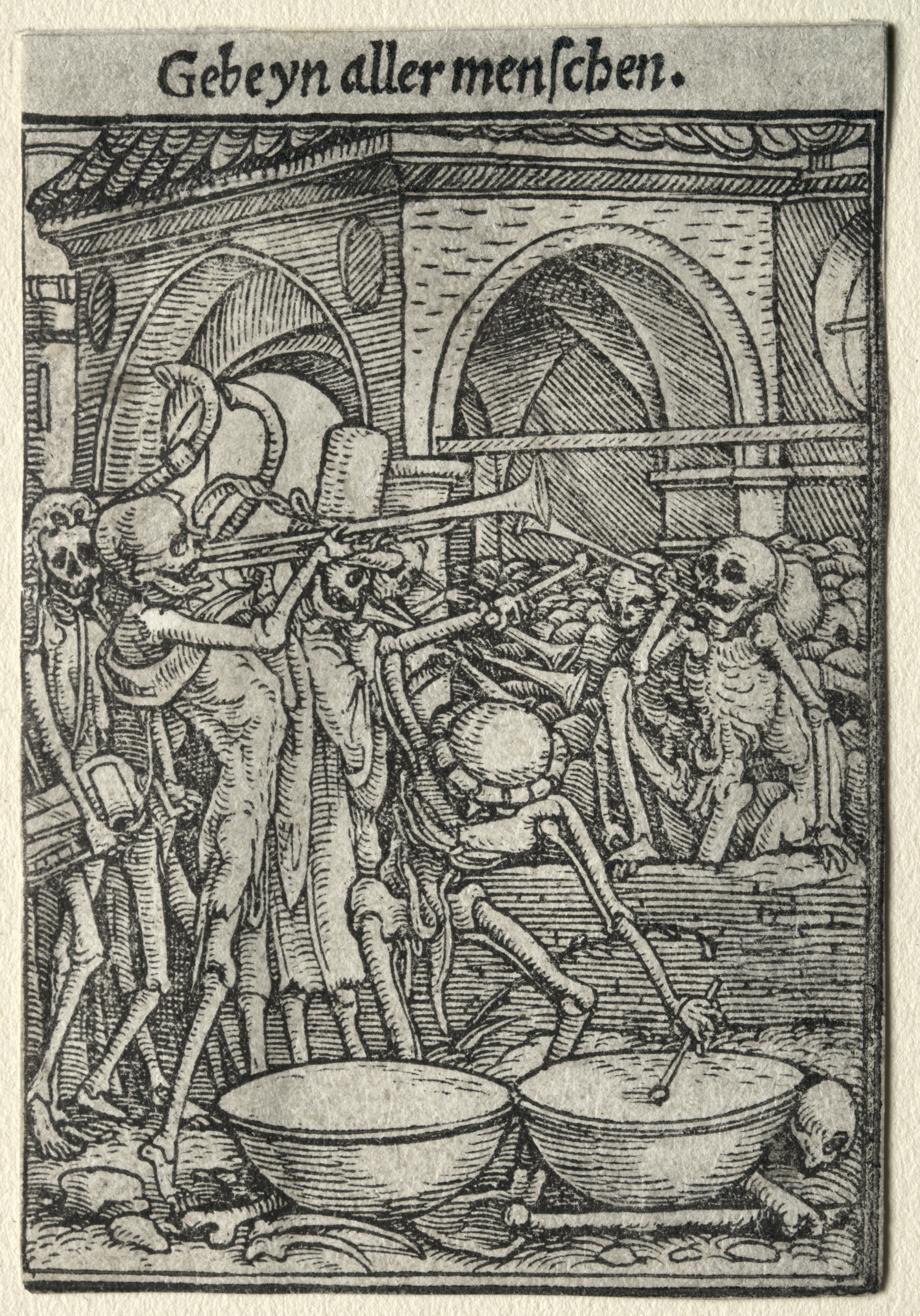 Holbein’s Dance of Death woodcuts are wonderfully spooky for Halloween. Made in the 1500s, they show cheeky skeletons dragging off everyone from peasants to kings. The bold black-and-white style feels even eerier once you know they were intended as moral lessons about mortality.