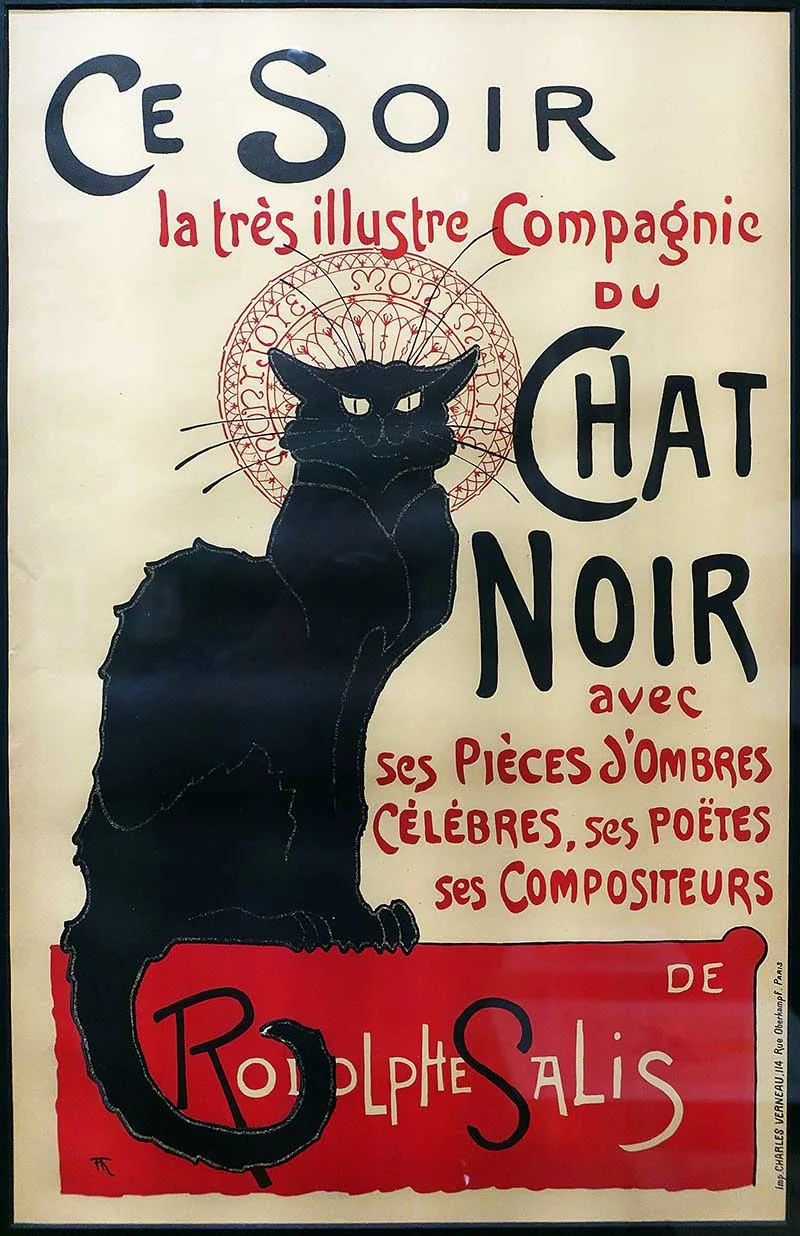 The “Tournee du Chat Noir, 1896” is an iconic poster by Théophile Alexandre Steinlen, promoting the famous Le Chat Noir cabaret in Bohemian Montmartre, Paris.