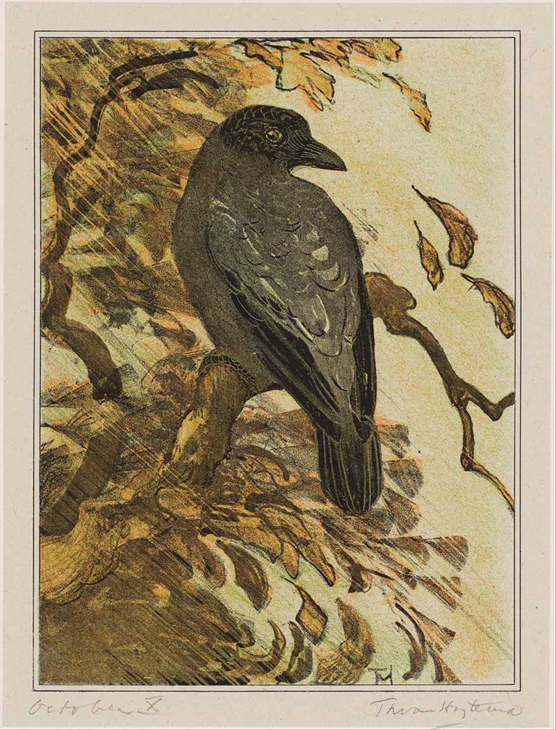 Pied crow on a branch, Theo van Hoytema, 1878 – 1910.
