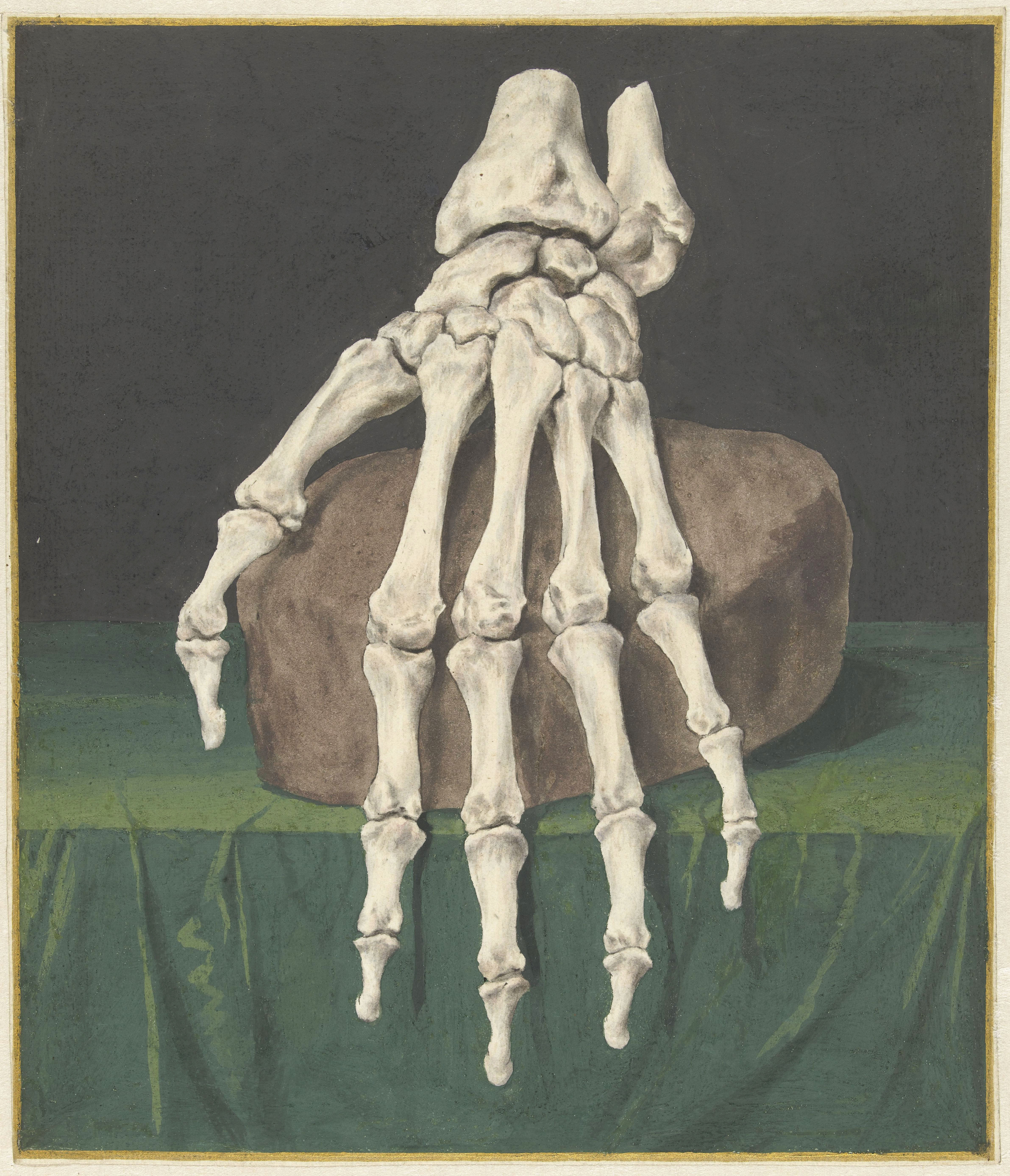 Skeleton of a Hand by Jan l’Admiral, who lived from 1709 to 1773.