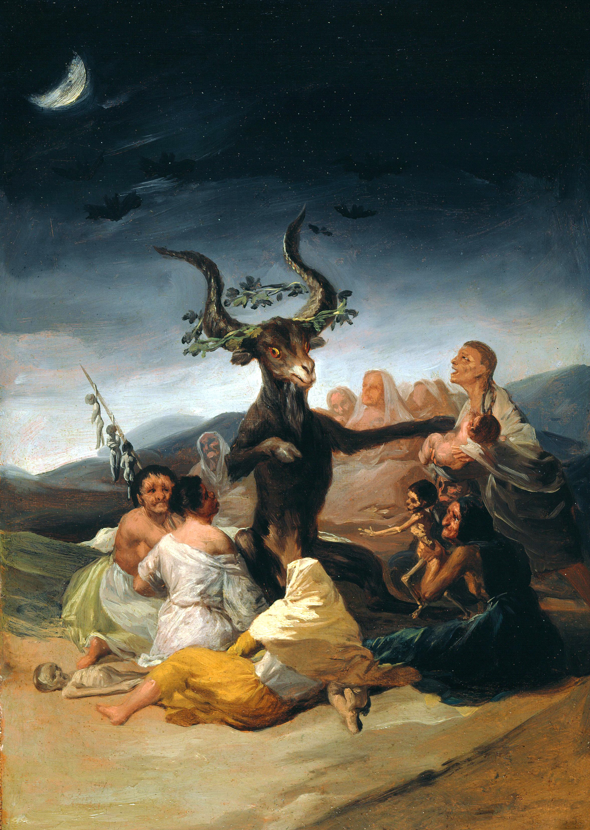 Witches’ Sabbath” (1797–1798) Also known as “The Great He-Goat,” this painting features a coven of witches gathered around a goat, a symbol of Satan. The scene is dark and eerie, with the distorted features of the witches adding to the unsettling atmosphere.