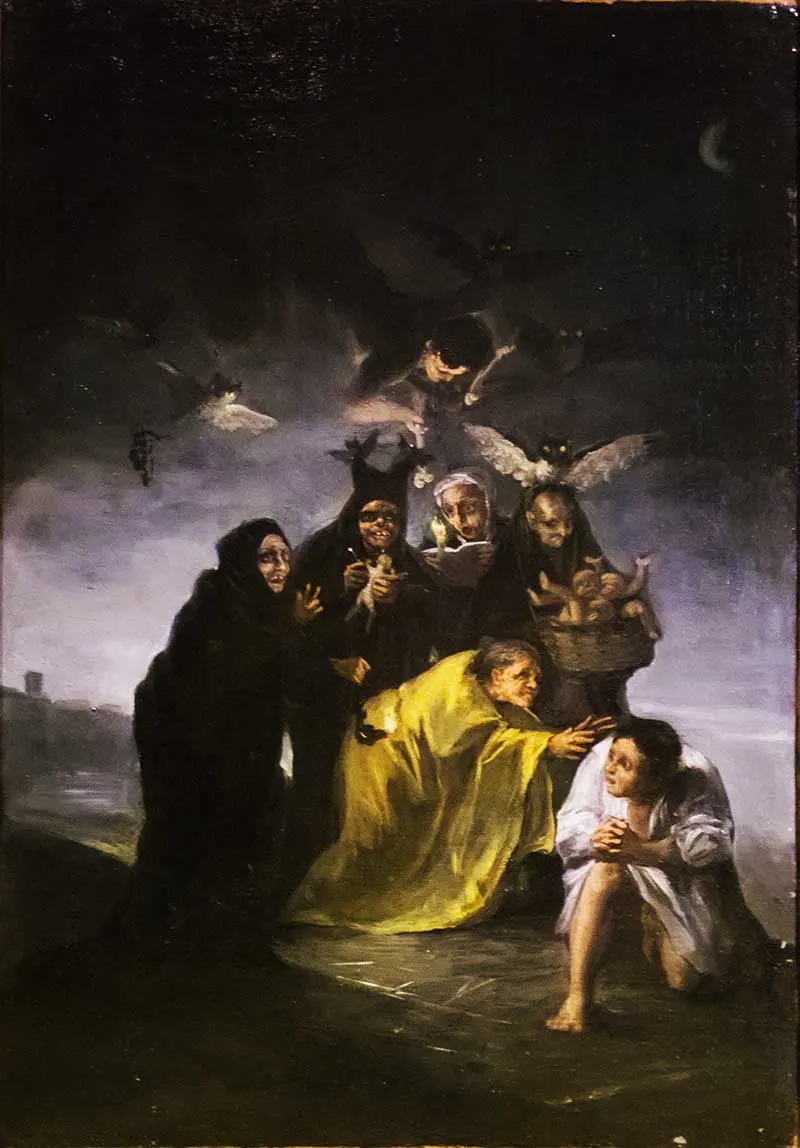 Paintings of witches in the Museo Lázaro Galdiano. “Las Brujas,” which translates to “The Witches,” is a theme that Francisco Goya explored in several of his works, depicting scenes of witchcraft and the supernatural.