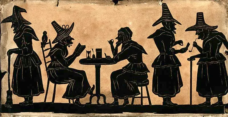 These free vintage illustrations feature spooky art from the past, showcasing classic Halloween themes such as witches, monsters, ghosts, black cats, and other dark, sinister, and satanic creatures.