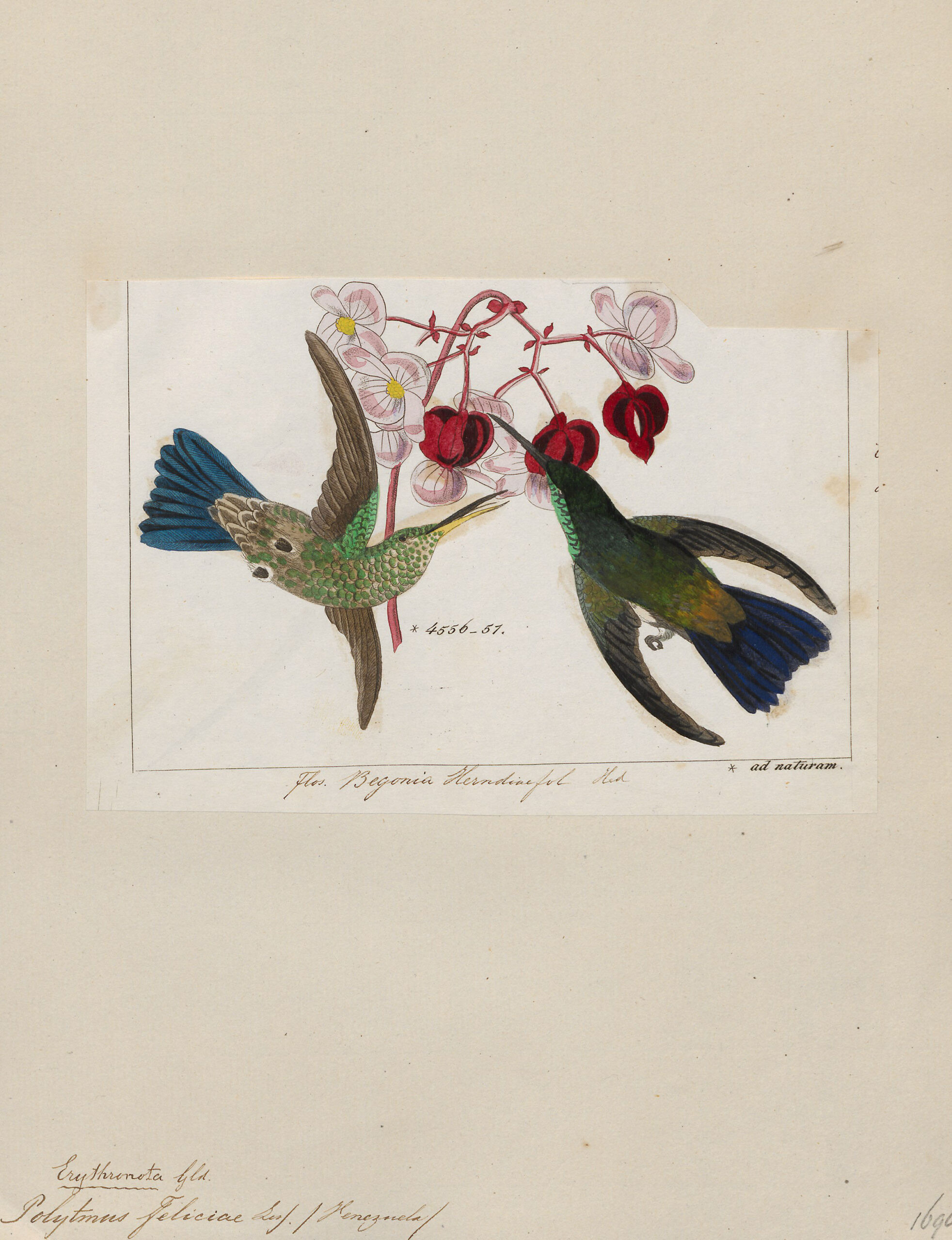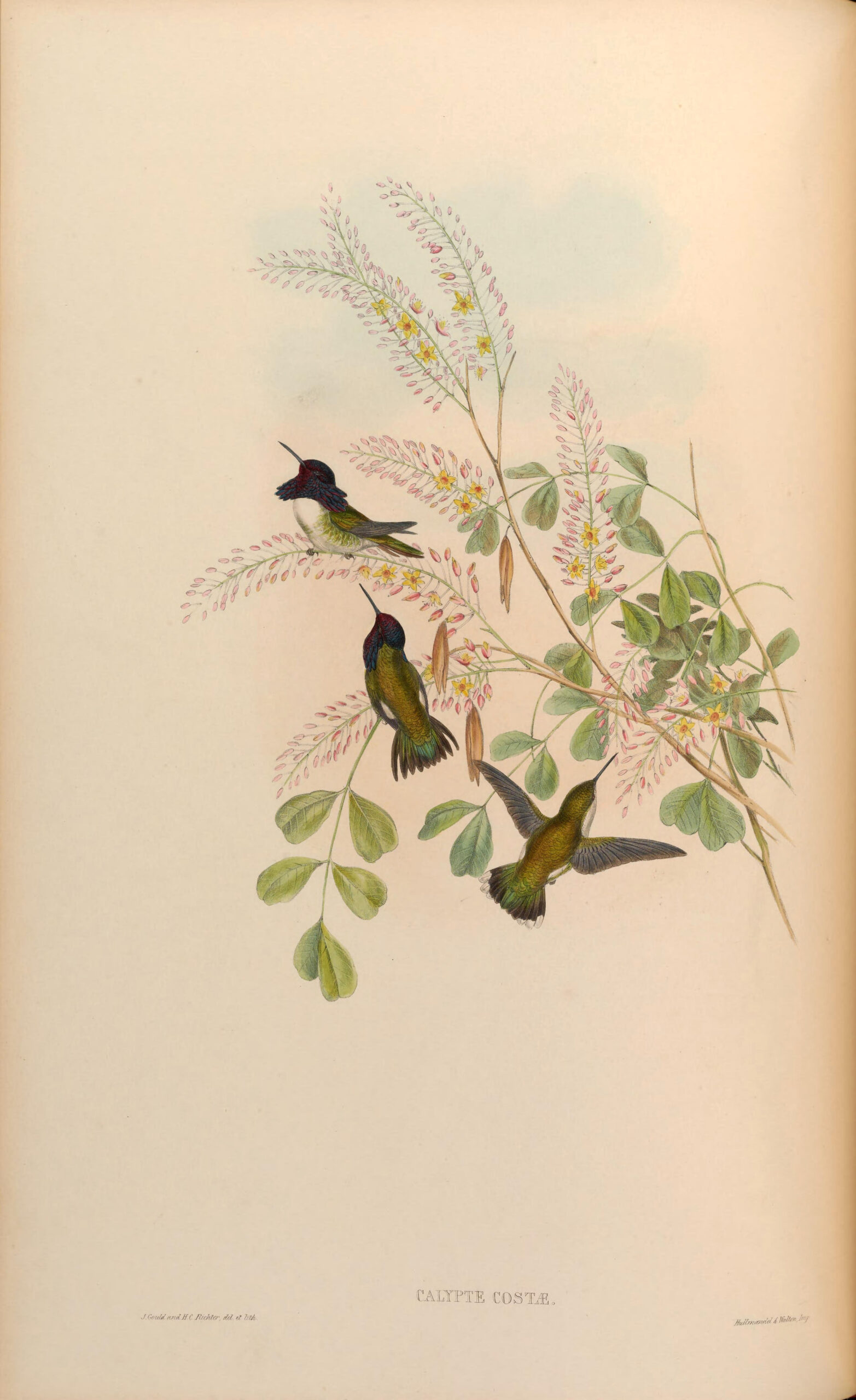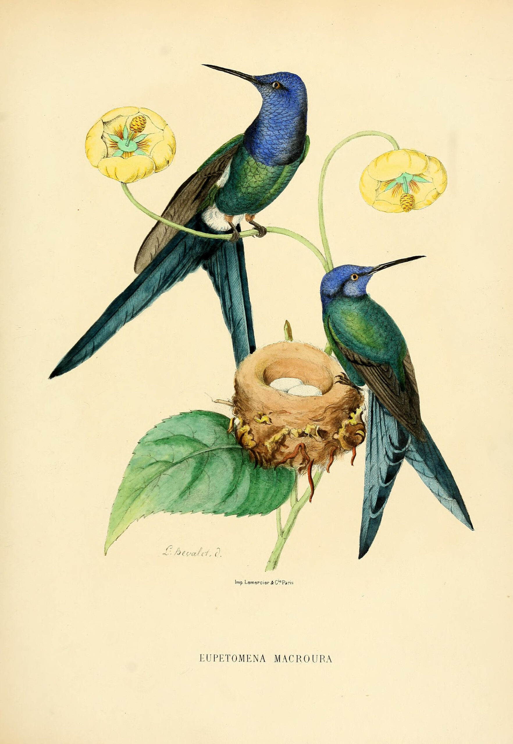 From the book “Histoire naturelle des oiseaux-mouches, ou, Colibris” (Natural History of Hummingbirds), by Louis Victor Bevalet, (1877).