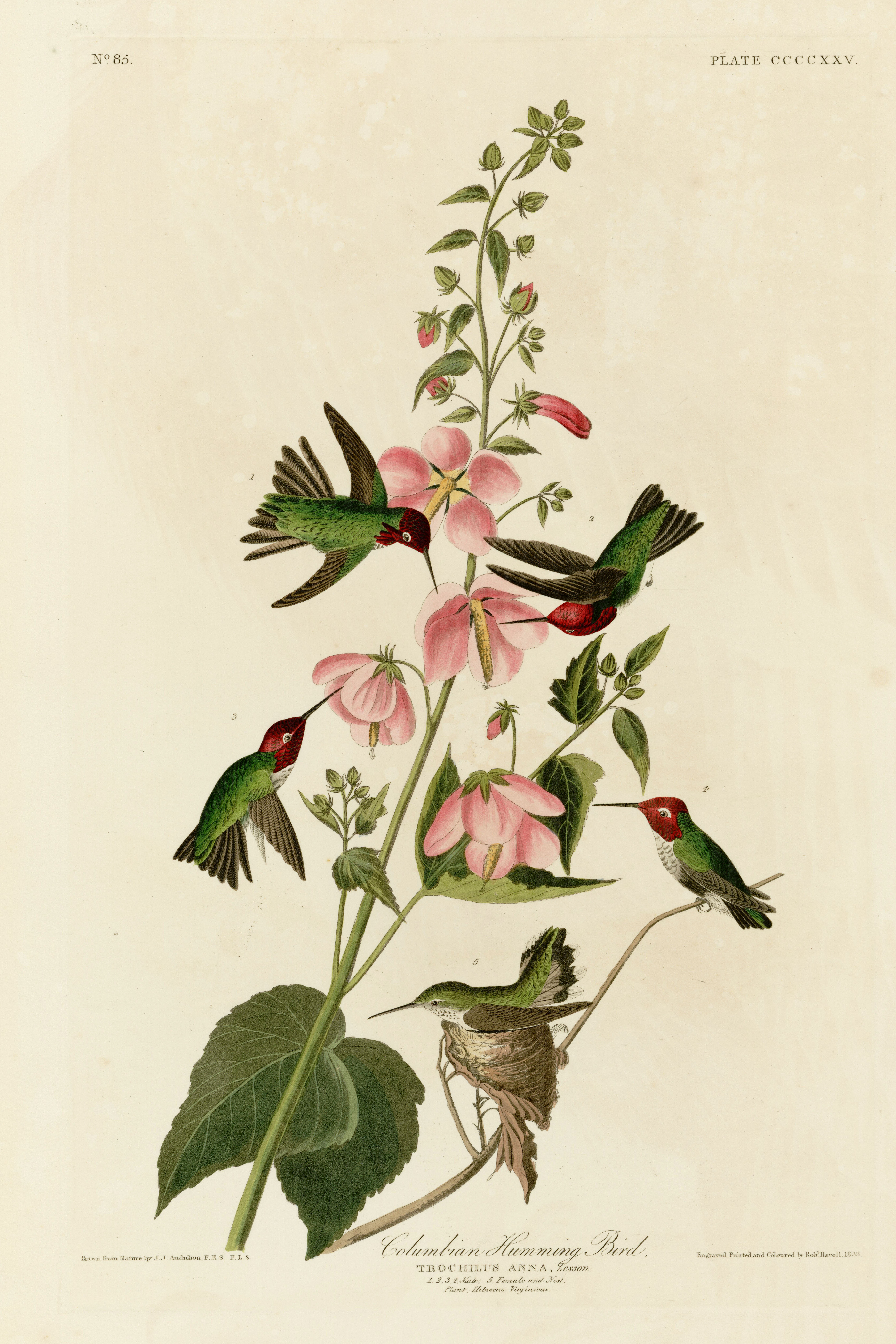 This beautiful vintage hummingbird print is from the famous Birds of America by John James Audubon (1827).