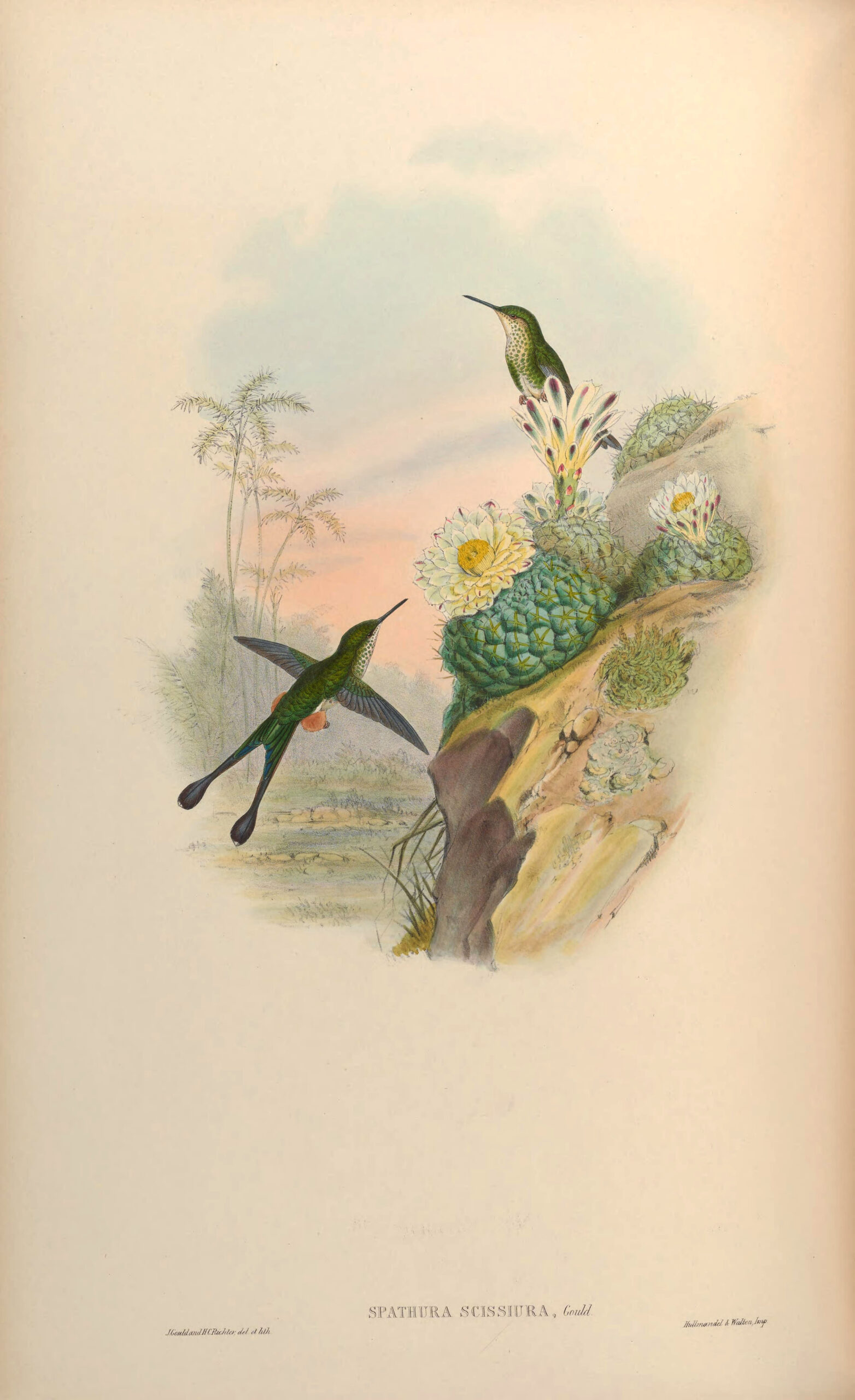 A hummingbird illustration from Gould’s book. Another species of hummingbird named after the shape of it’s tail feathers.