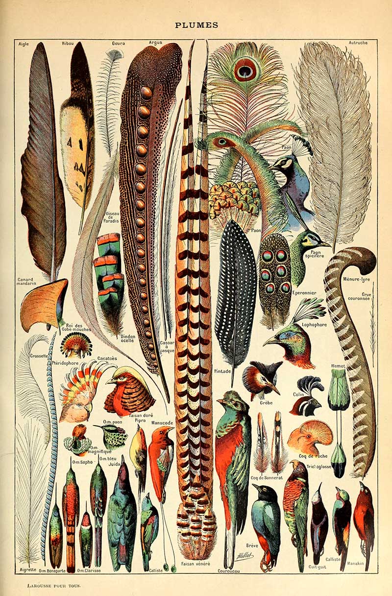 This is a very famous poster illustrations of feathers from the French encyclopedia “Le Larousse pour tous“.