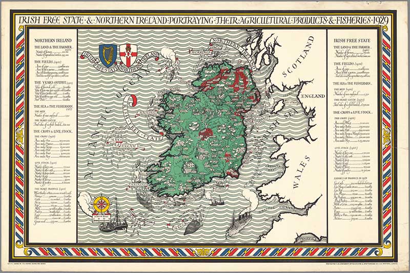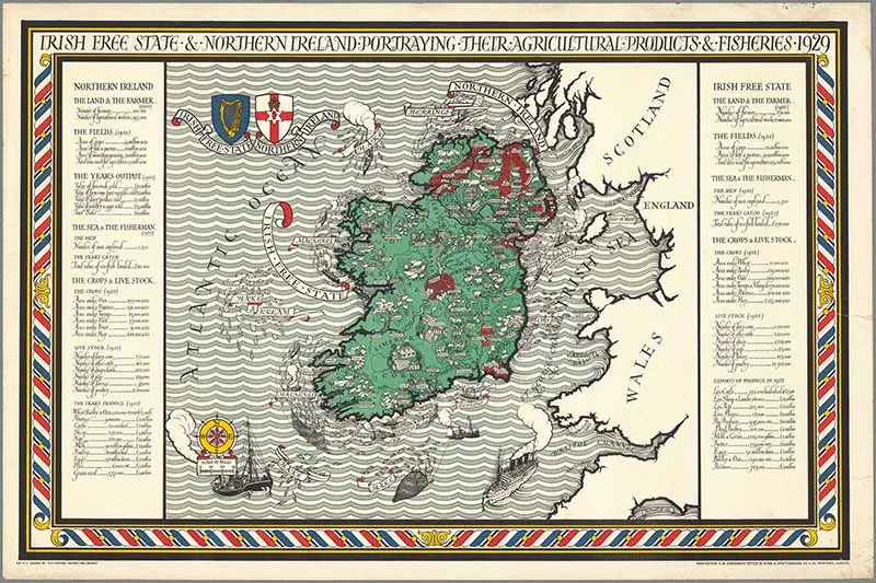 A map of the Irish Free State & Northern Ireland Portraying Their Agricultural Products & Fisheries 1929. Published by Gill, Leslie MacDonald for the Empire Marketing Board.
