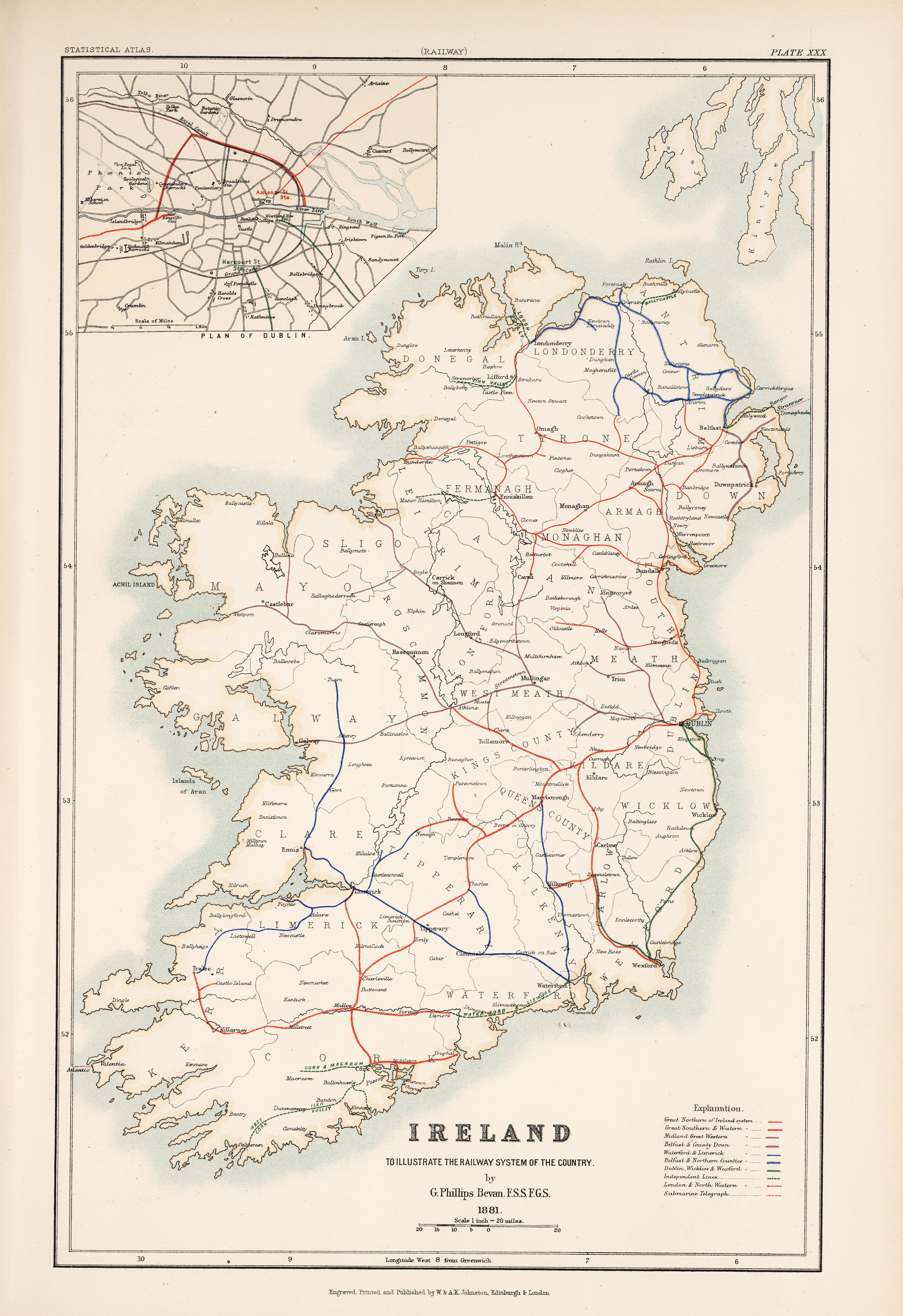 Ireland map to Illustrate the Railway System of the Country by G. Phillips 1881.
