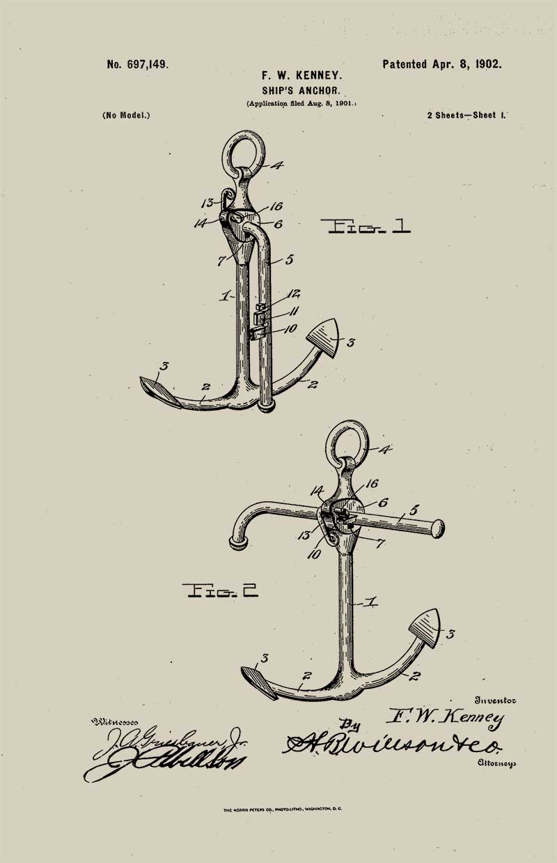 A patent for a ships anchor.