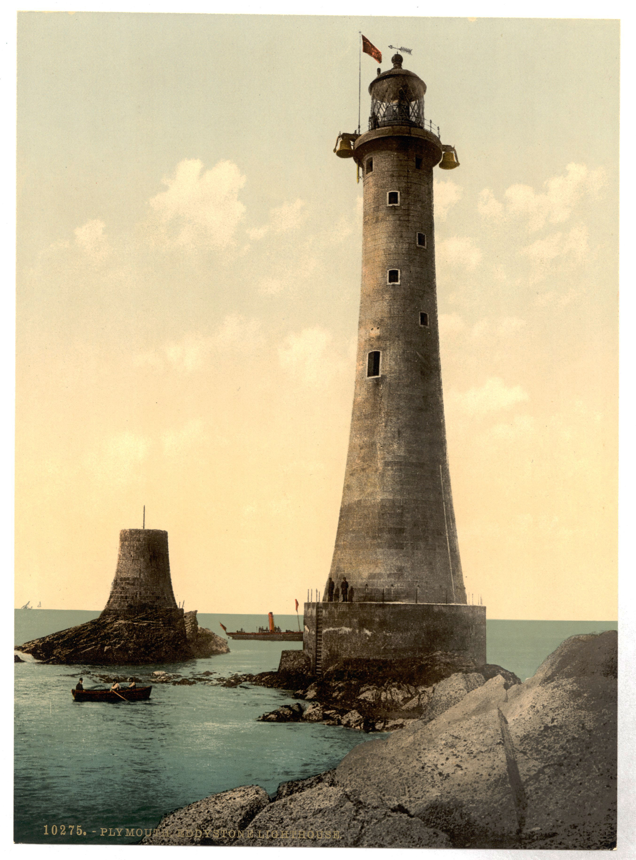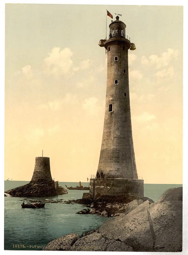 A photochrom print of the Eddystone Lighthouse, Plymouth, England, 1890.
