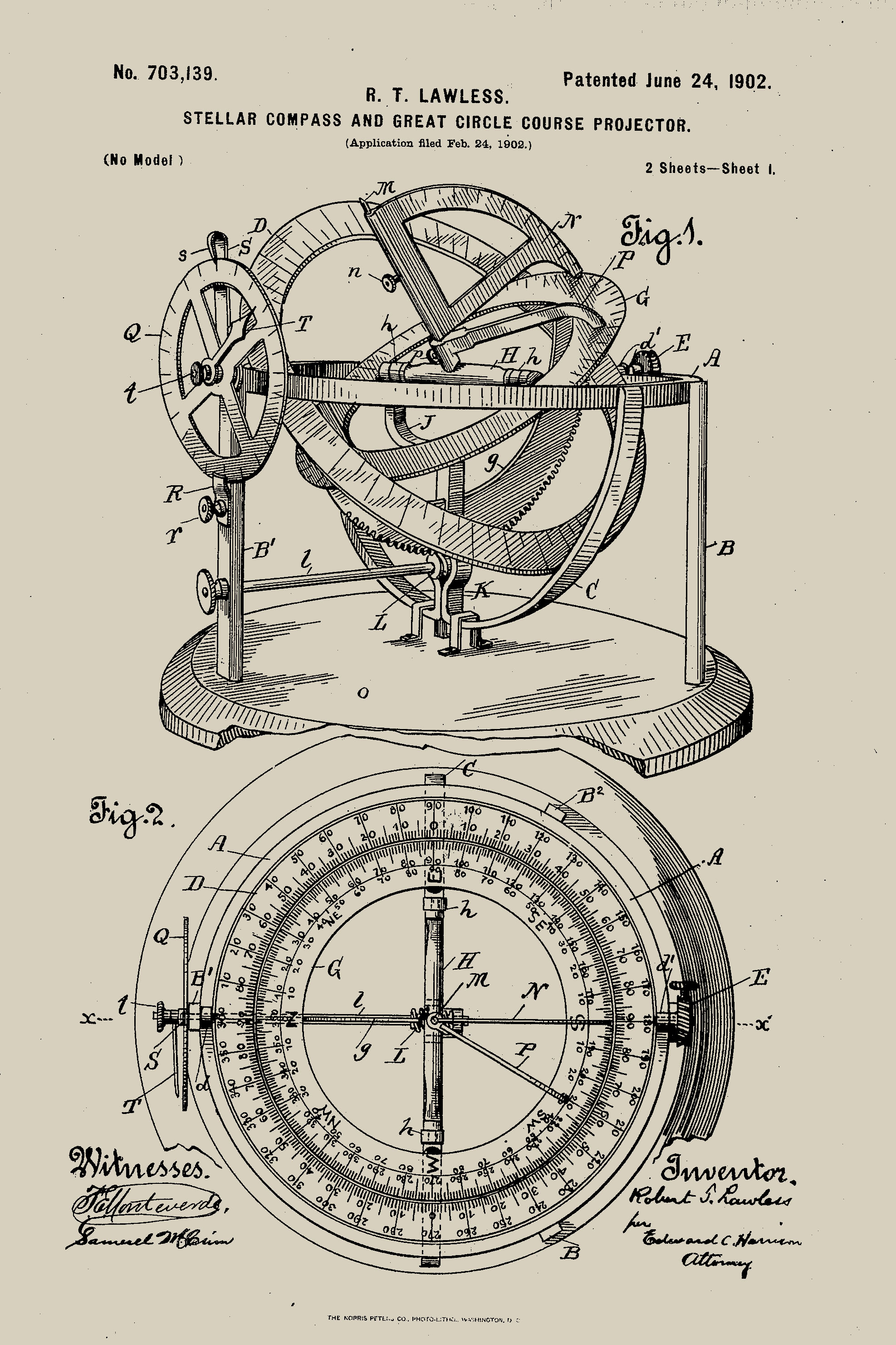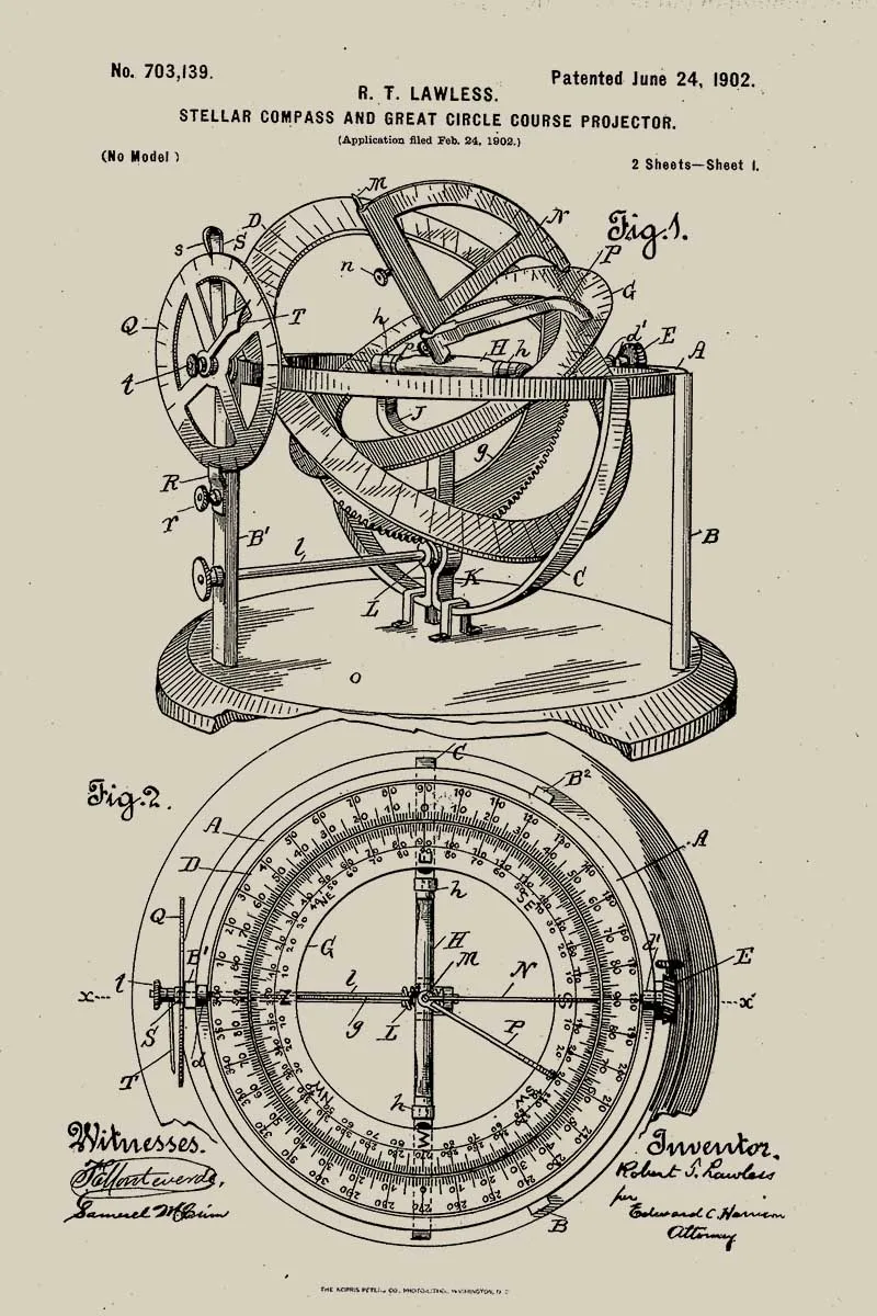 A patent for a stellar compass and great circle course projector.