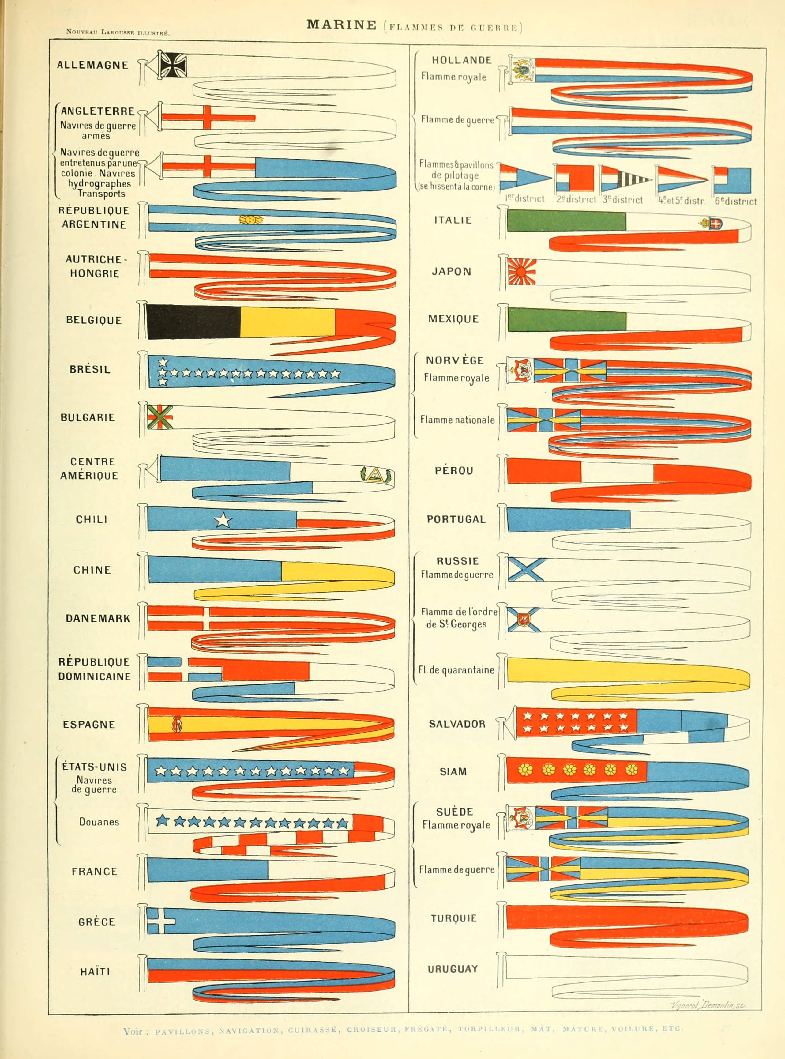 A chart of marine flags from the French illustrated dictionary “Nouveau Larousse illustré” 1898.
