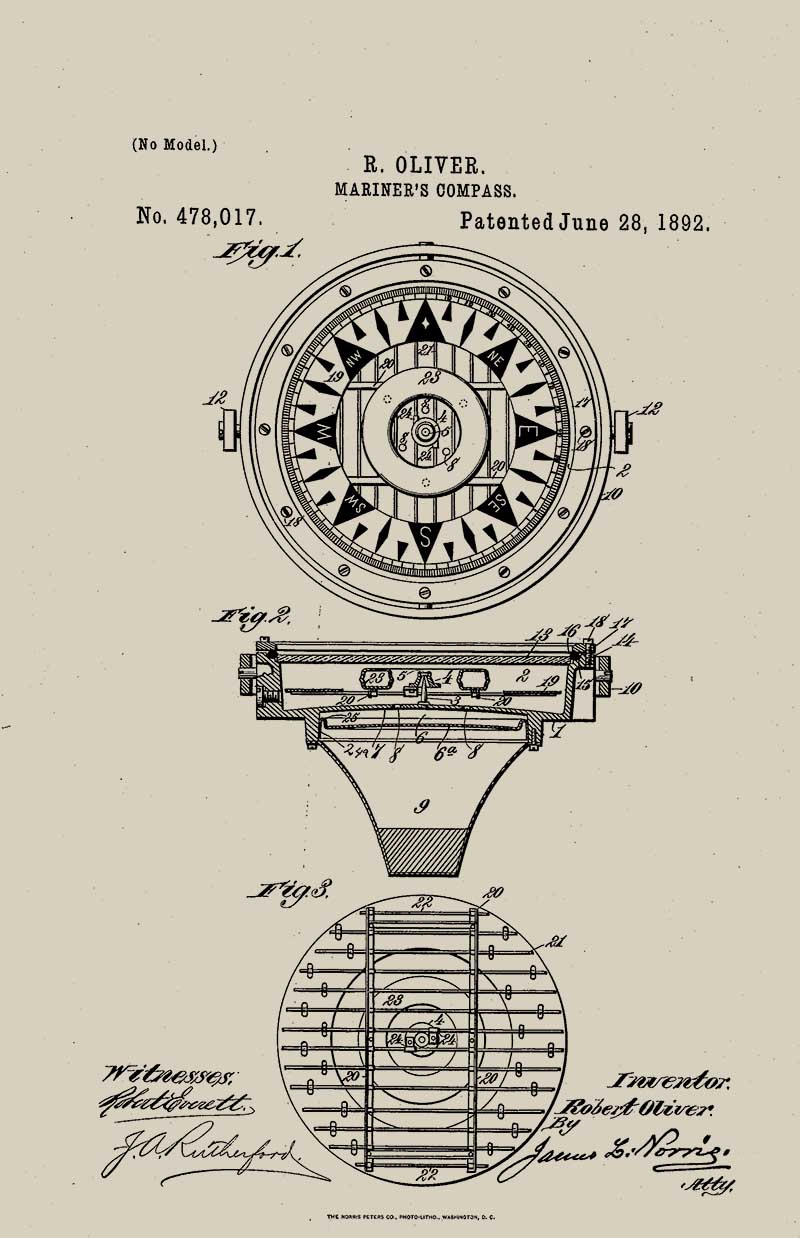A patent fro a Mariner’s magnetic compass 1892.