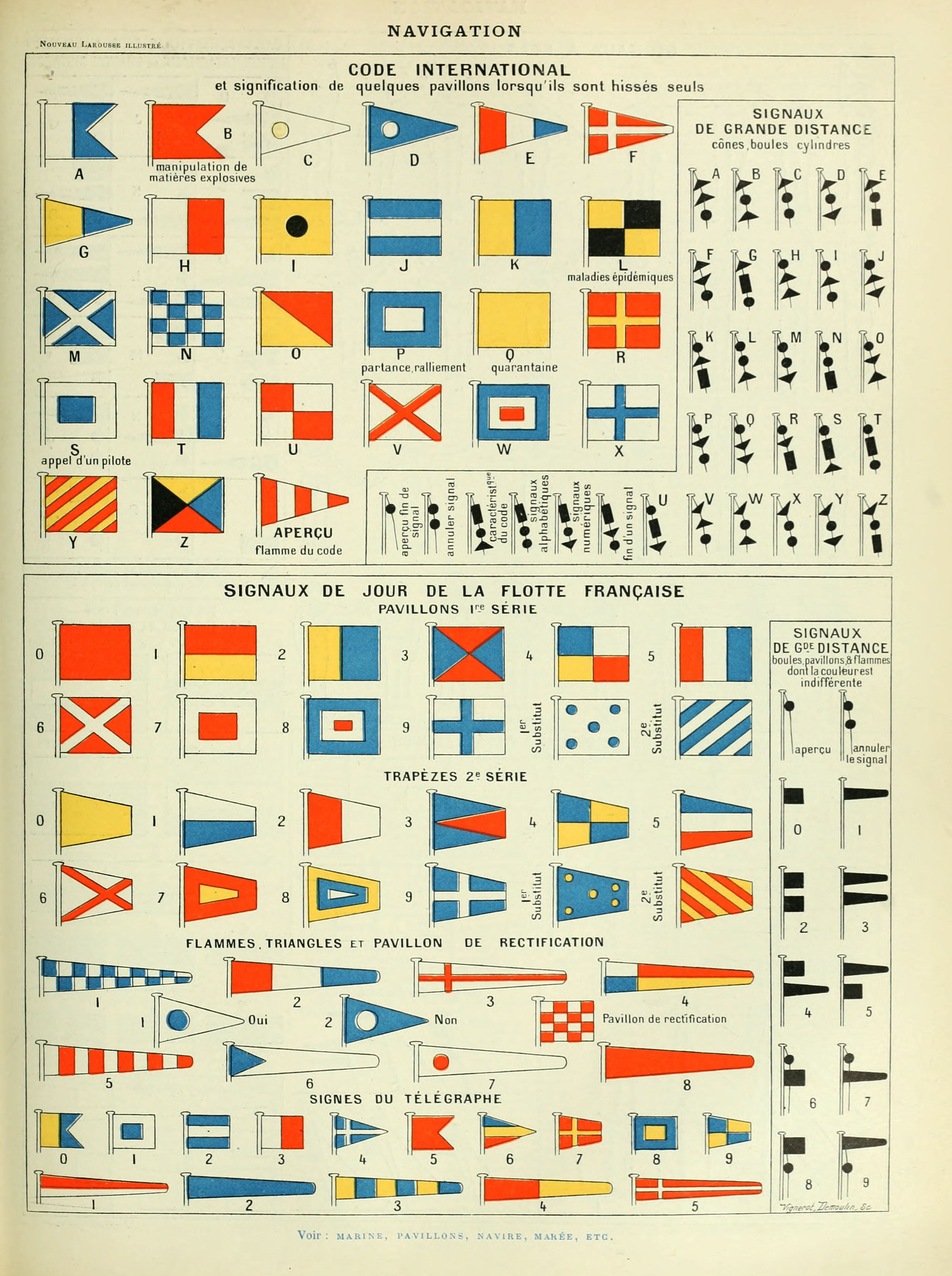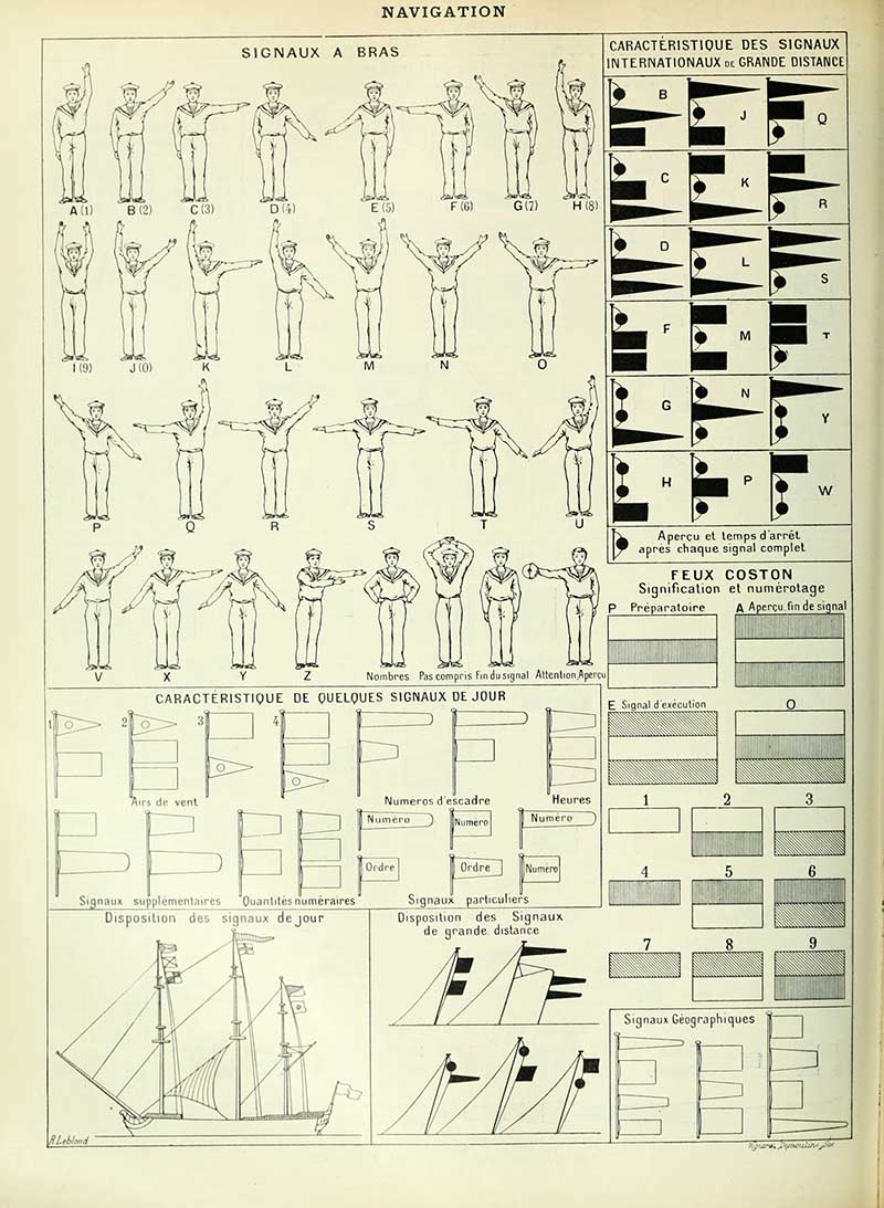 A chart of nautical flags from the French illustrated dictionary “Nouveau Larousse illustré” 1898.