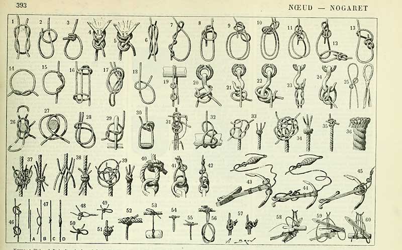 A chart of knots from the Larousse illustrated dictionarys.