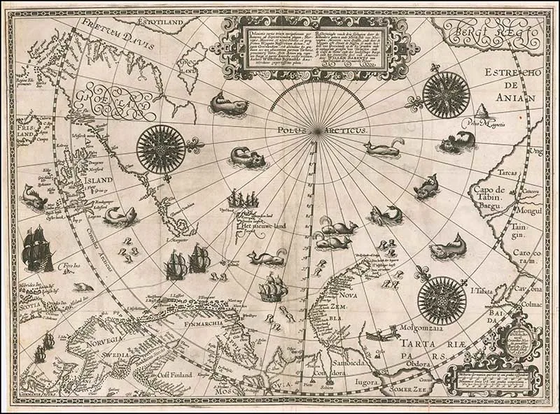 Map 10: 1598 Map of the Polar Regions by Willem Barentsz