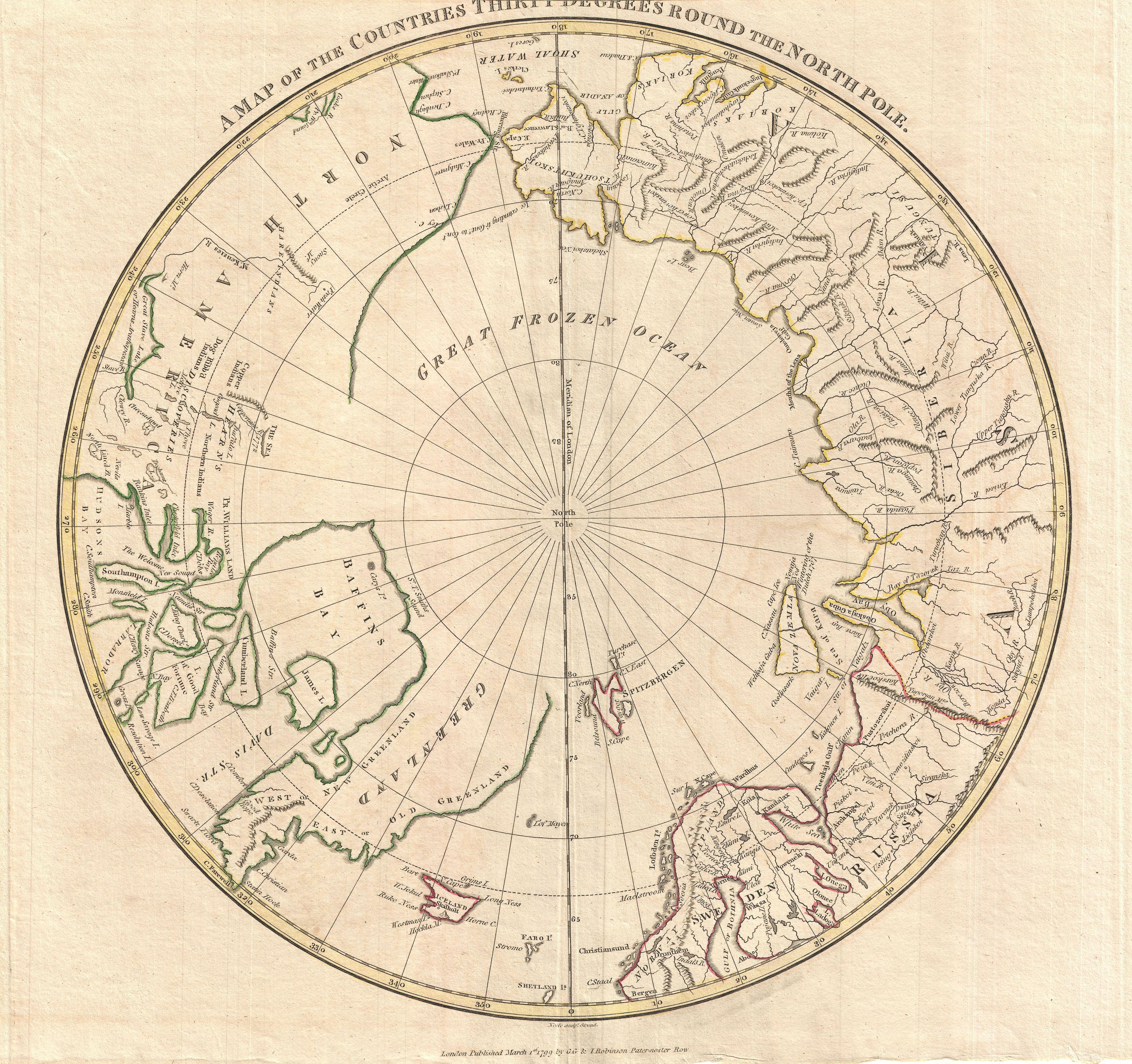 Map 9: 1799 Map of the Countries Thirty Degrees Round the North Pole