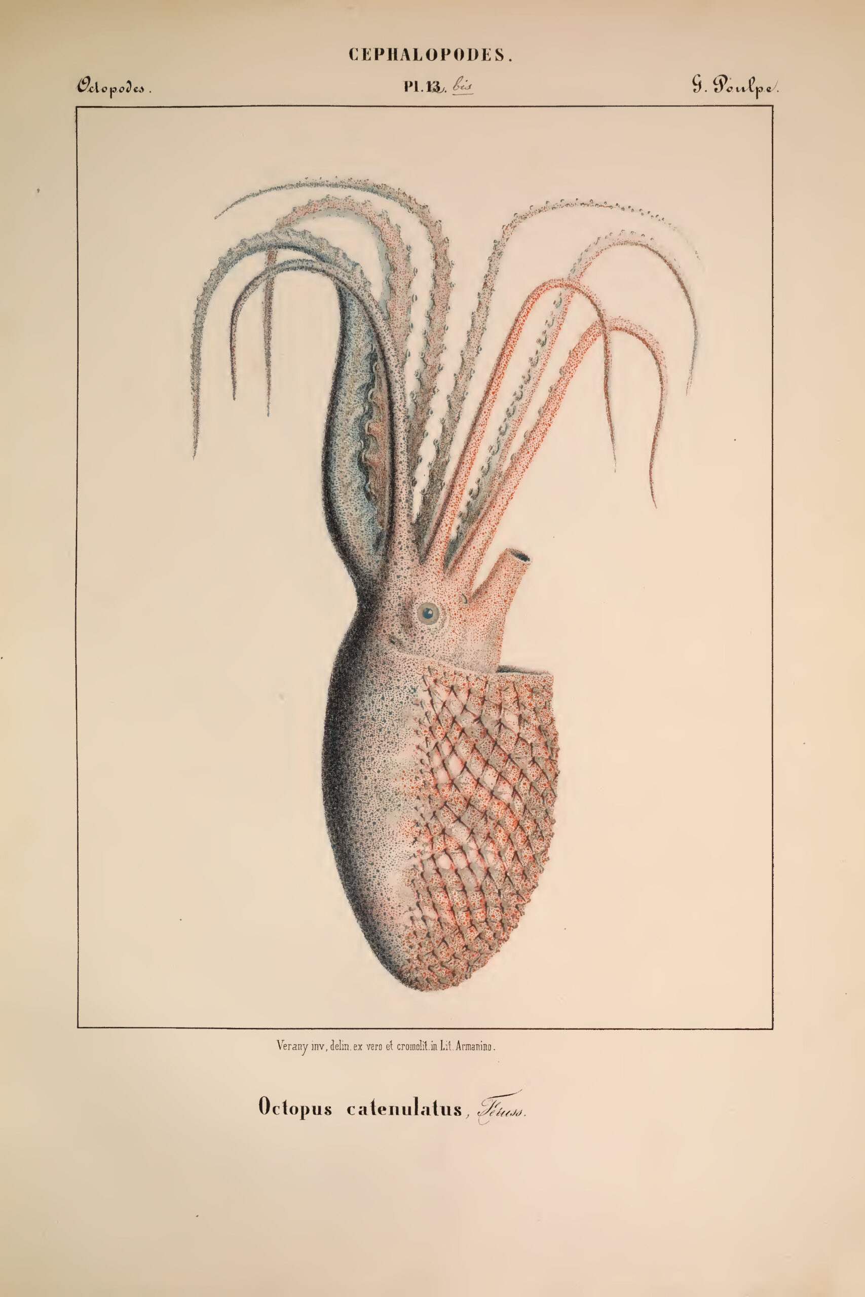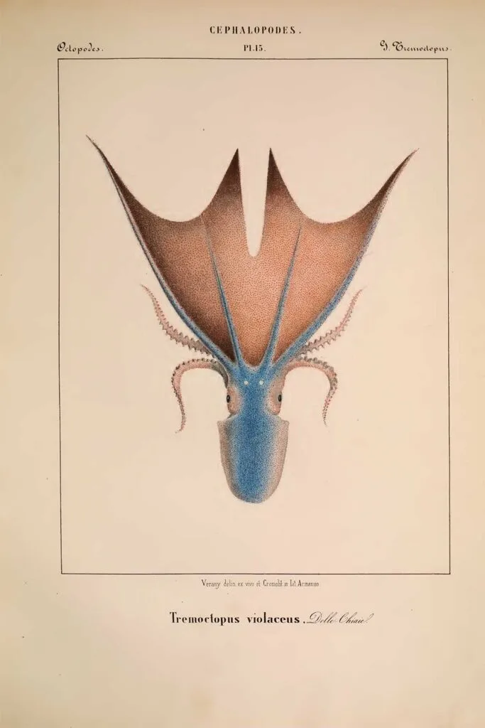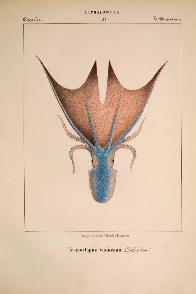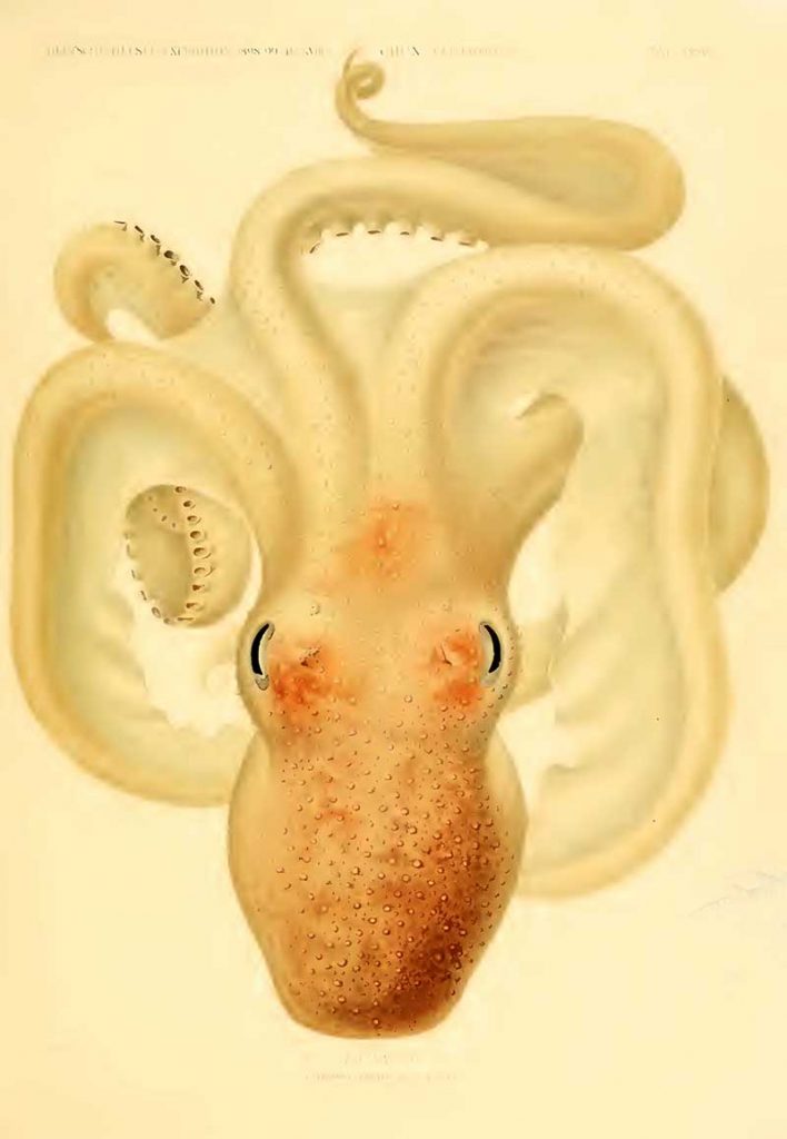 The octopus was first discovered off the coast of East Africa. It is from the book “Die Cephalopoden” by Carl Chun 1910.