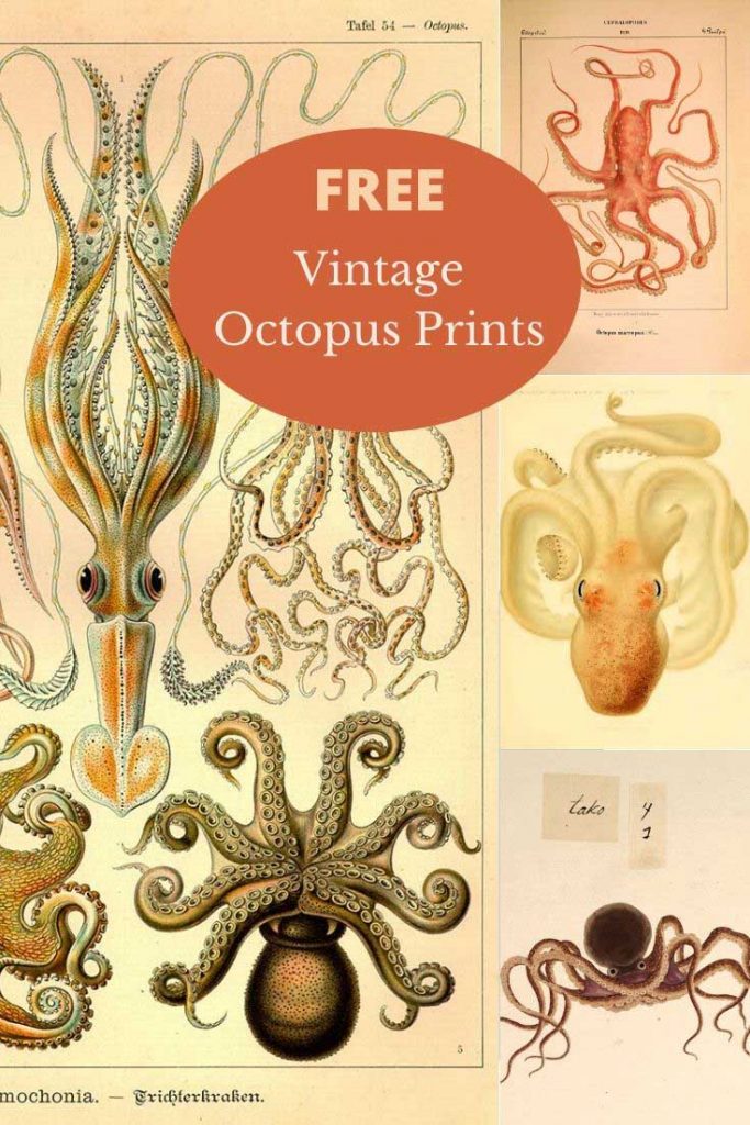 Did you know that the plural of octopus is octopuses? Not as I misbelieved octopi. Octopus is a Greek word, not Latin, which is why the plural doesn’t end in i. Here I have curated a fantastic collection of vintage octopus illustrations free to print.