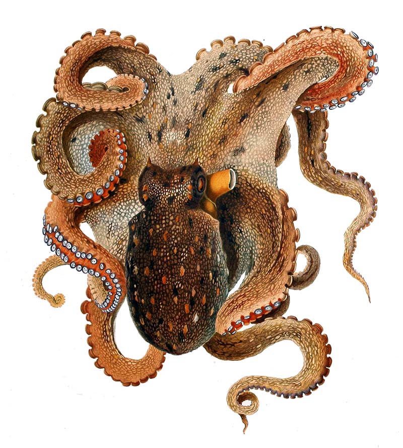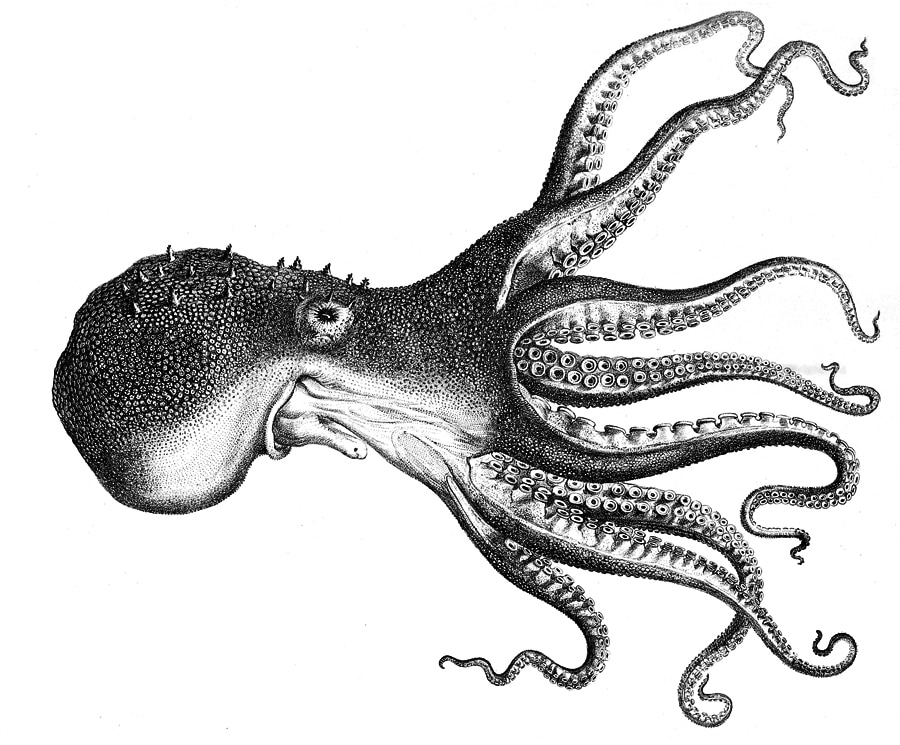 All the octopus prints featured here are in the Public Domain; they are copyright free. The collection covers scientific octopus illustrations, black-and-white drawings and octopuses in art paintings and drawings.