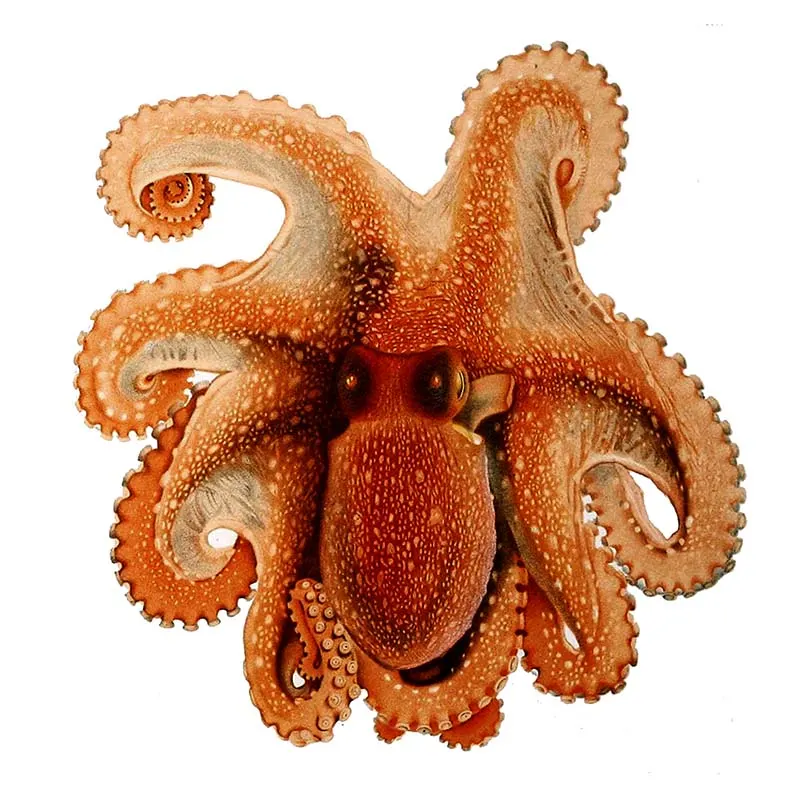 Another illustration of the common octopus, it’s one of the most studied of all octopus species, and also one of the most intelligent.