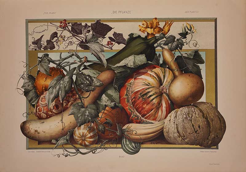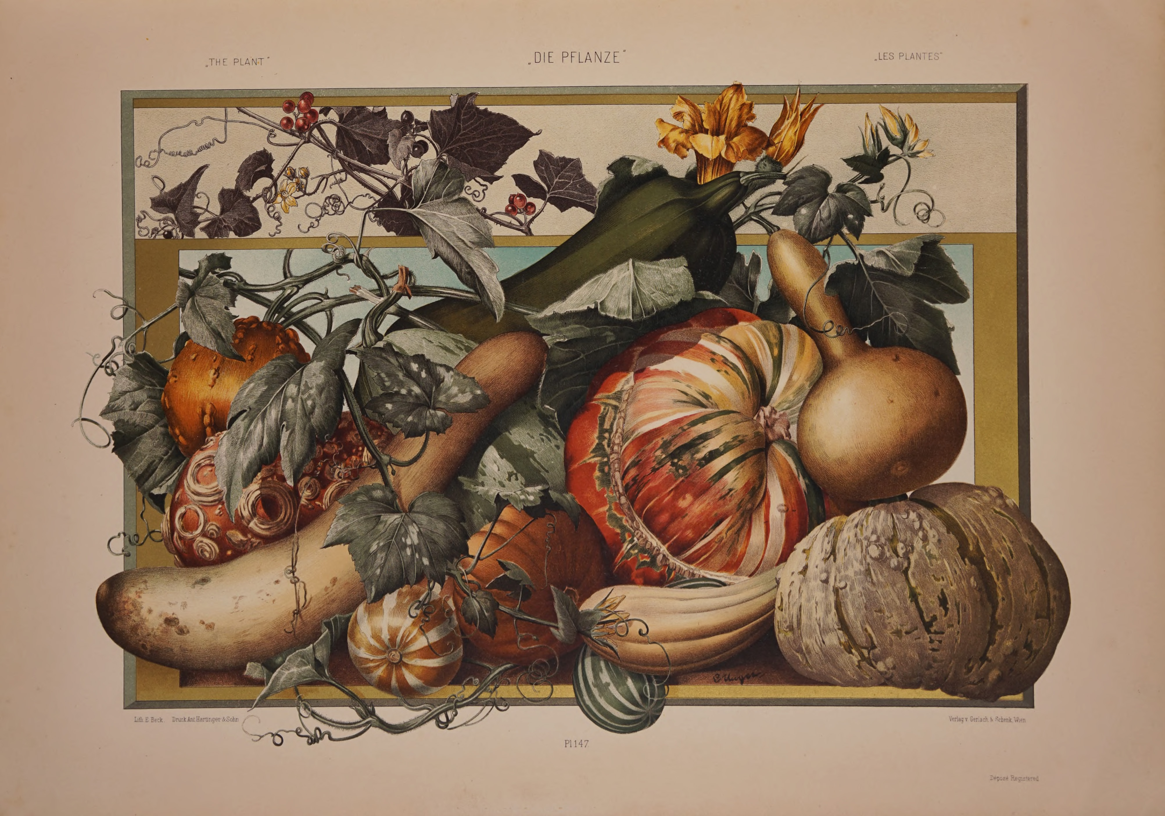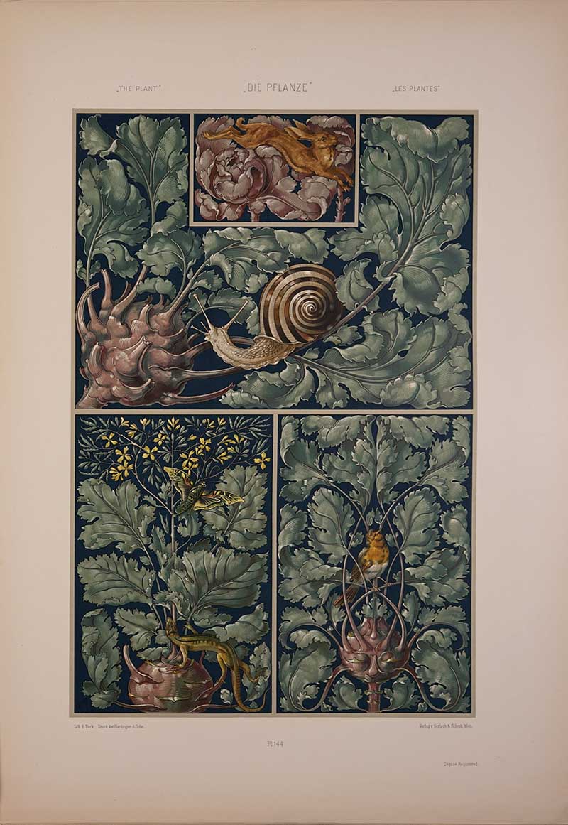 Animals and plants are combined in this motive painting of Kohlrabi by Anton Seder. Vernuil also did this later with his Art Nouveau animal patterns.