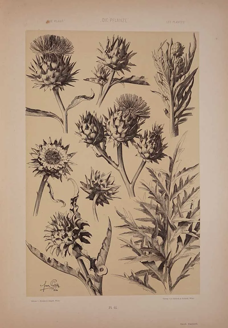 Inside: A collection of vintage plant art plates from the book “Die Pflanze in Kunst und Gewerbe” by Martin Gerlach. All are in the Public Domain and free to download.