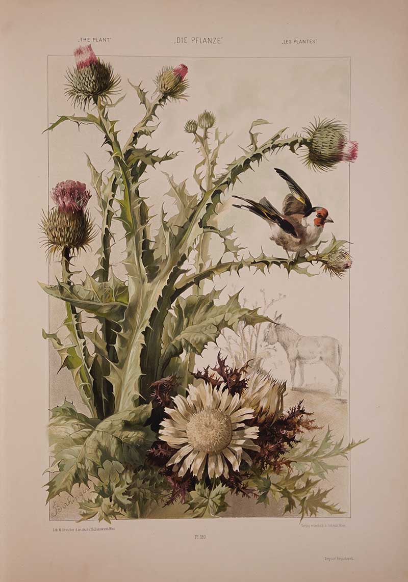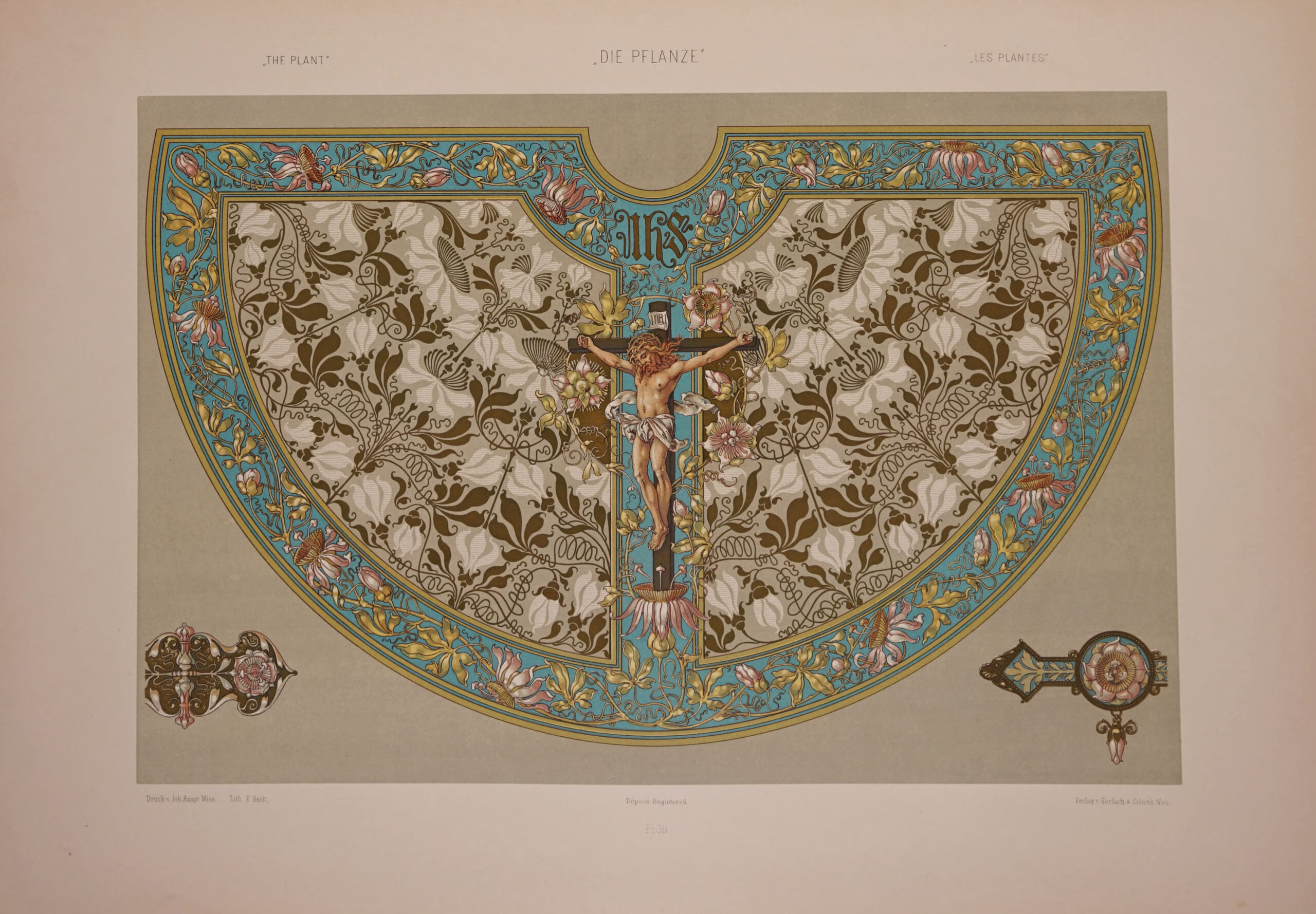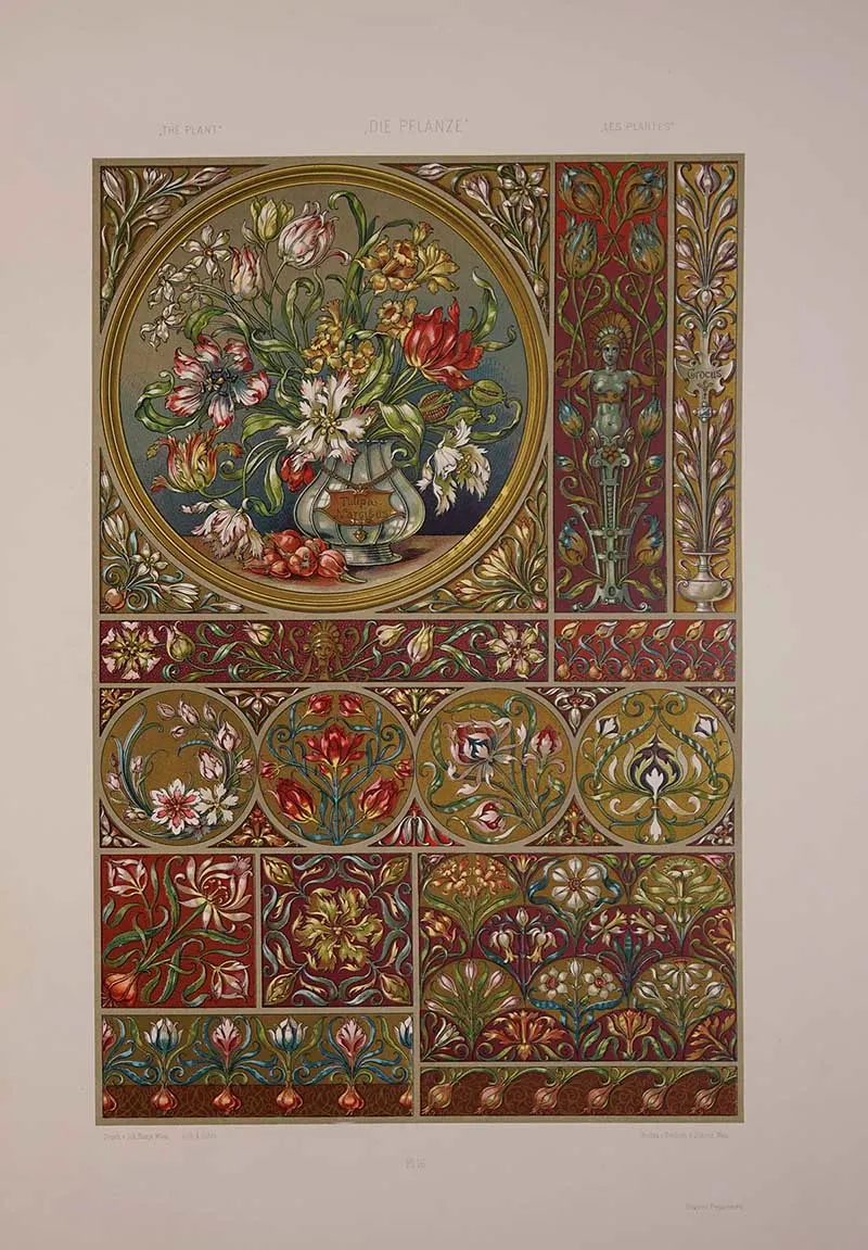 Volume 1: The first volume of “Die Pflanze in Kunst und Gewerbe” is titled “Geschichte der Pflanze in der abendländischen Kunst” (History of the Plant in Western Art). This volume focuses on the historical depiction of plants in art.