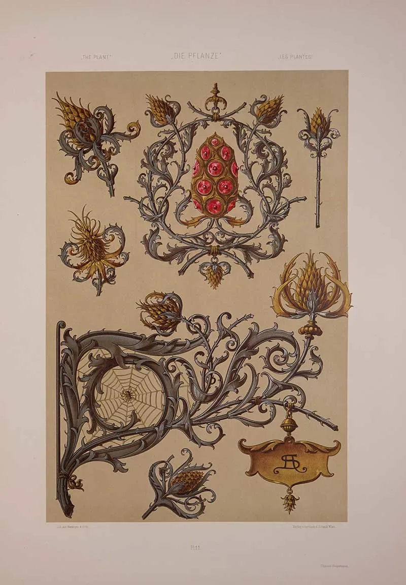 Gerlach’s work had a more scholarly and analytical focus, emphasising the relationship between plants and art in a broader cultural context. On the other hand, Verneuil was known for his avant-garde and decorative approach to plant motifs, which was more closely associated with the Art Nouveau movement.